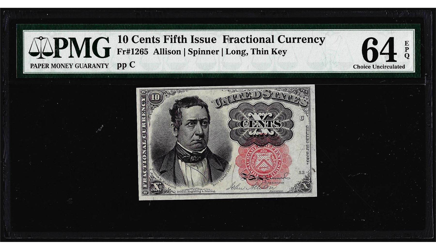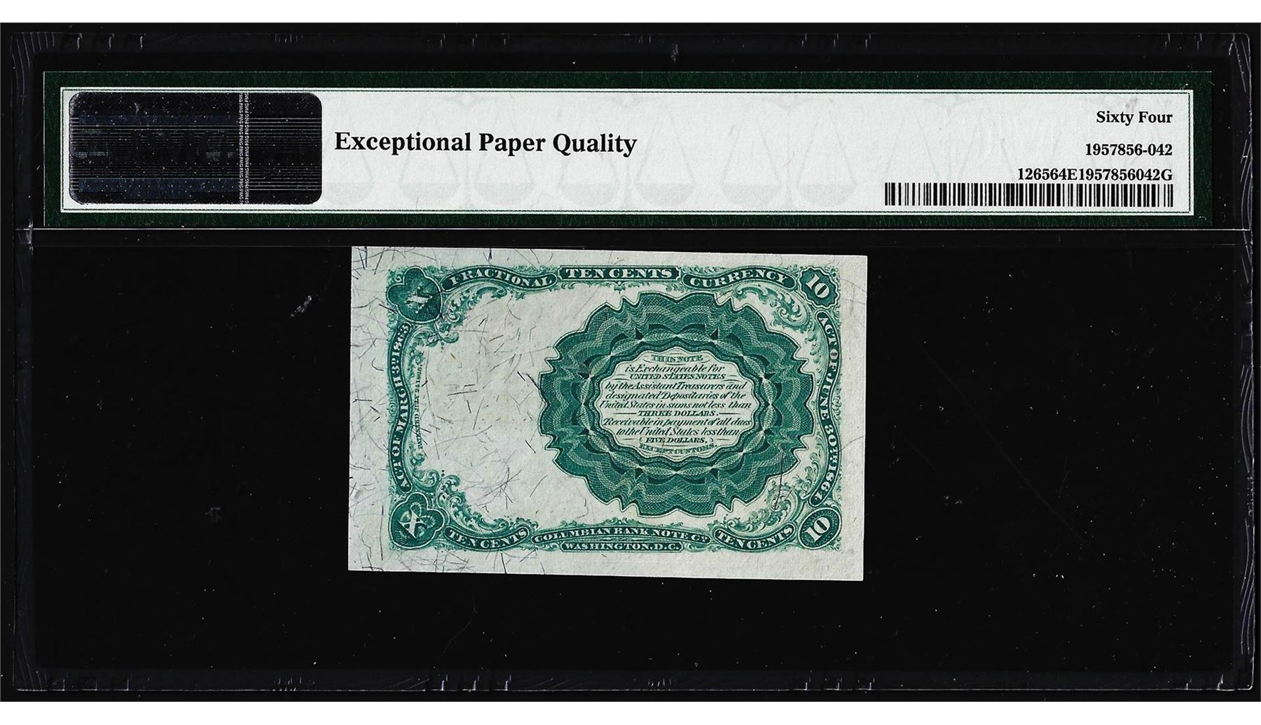One 1874 10 Cent Fifth Issue Fractional Currency Note Fr.1265 PMG Choice Uncirculated 64EPQ. PMG Certified.