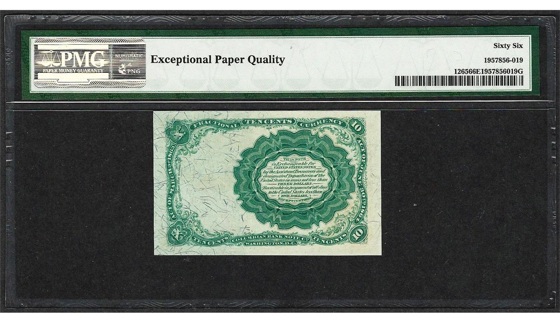 One 1874 10 Cent Fifth Issue Fractional Currency Note Fr.1265 PMG Gem Uncirculated 66EPQ. PMG Certified.