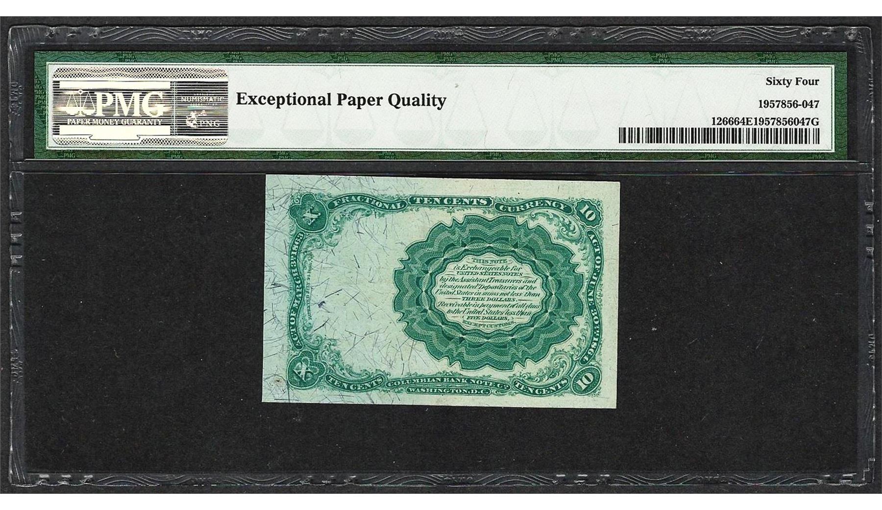 One 1874 10 Cent Fifth Issue Fractional Currency Note Fr.1266 PMG Choice Uncirculated 64EPQ. PMG Certified.
