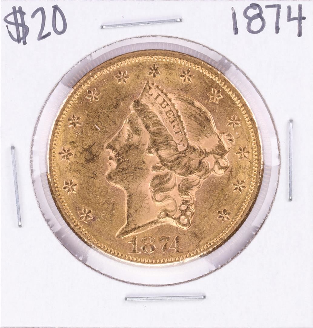 One 1874 $20 Liberty Head Double Eagle Gold Coin .