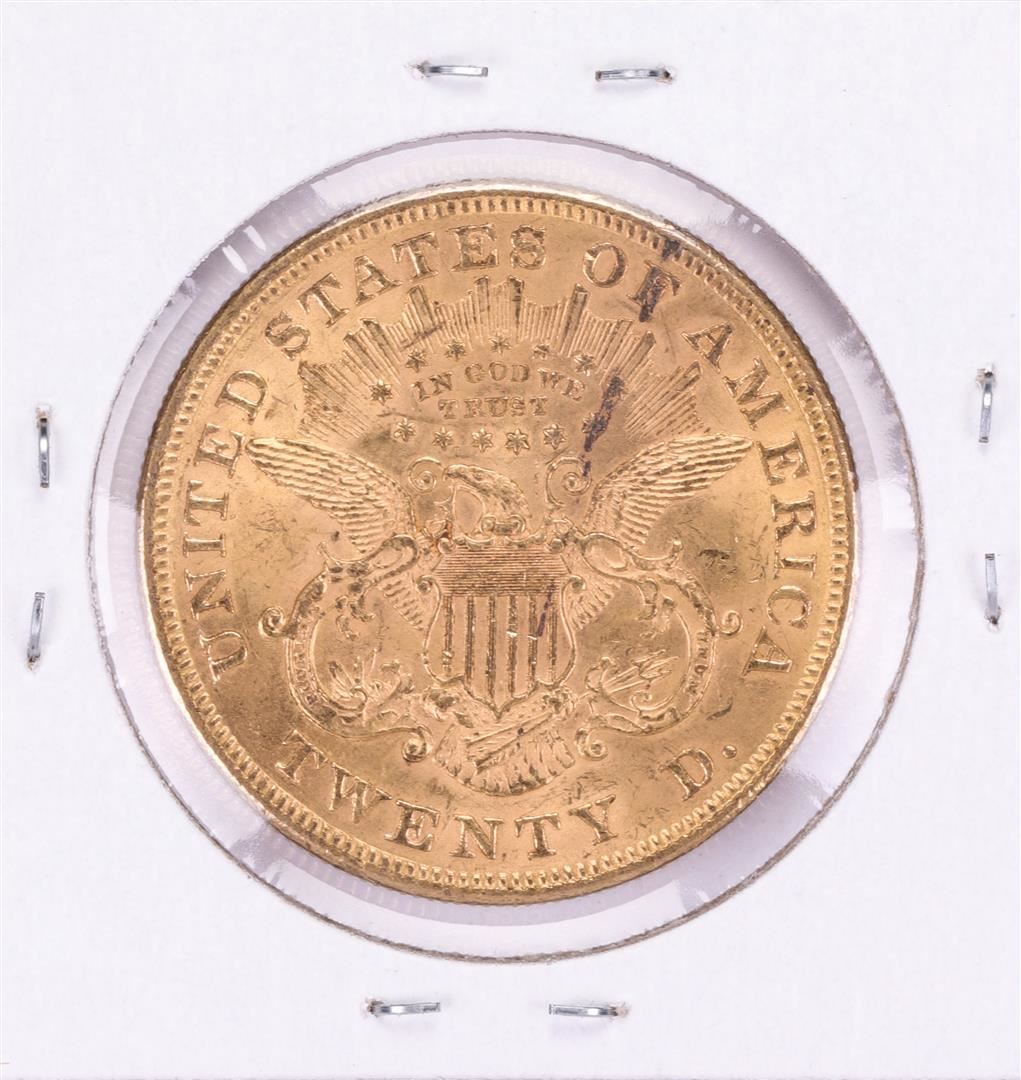 One 1874 $20 Liberty Head Double Eagle Gold Coin .