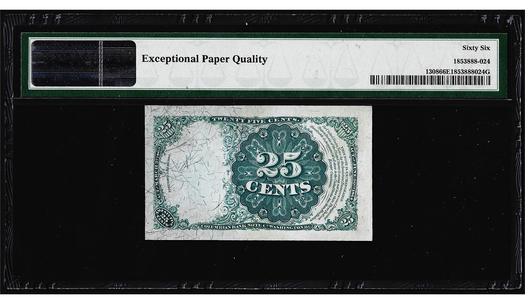 One 1874 25 Cents Fifth Issue Fractional Currency Note Fr.1309 PMG Gem Uncirculated 66EPQ. PCGS Graded.