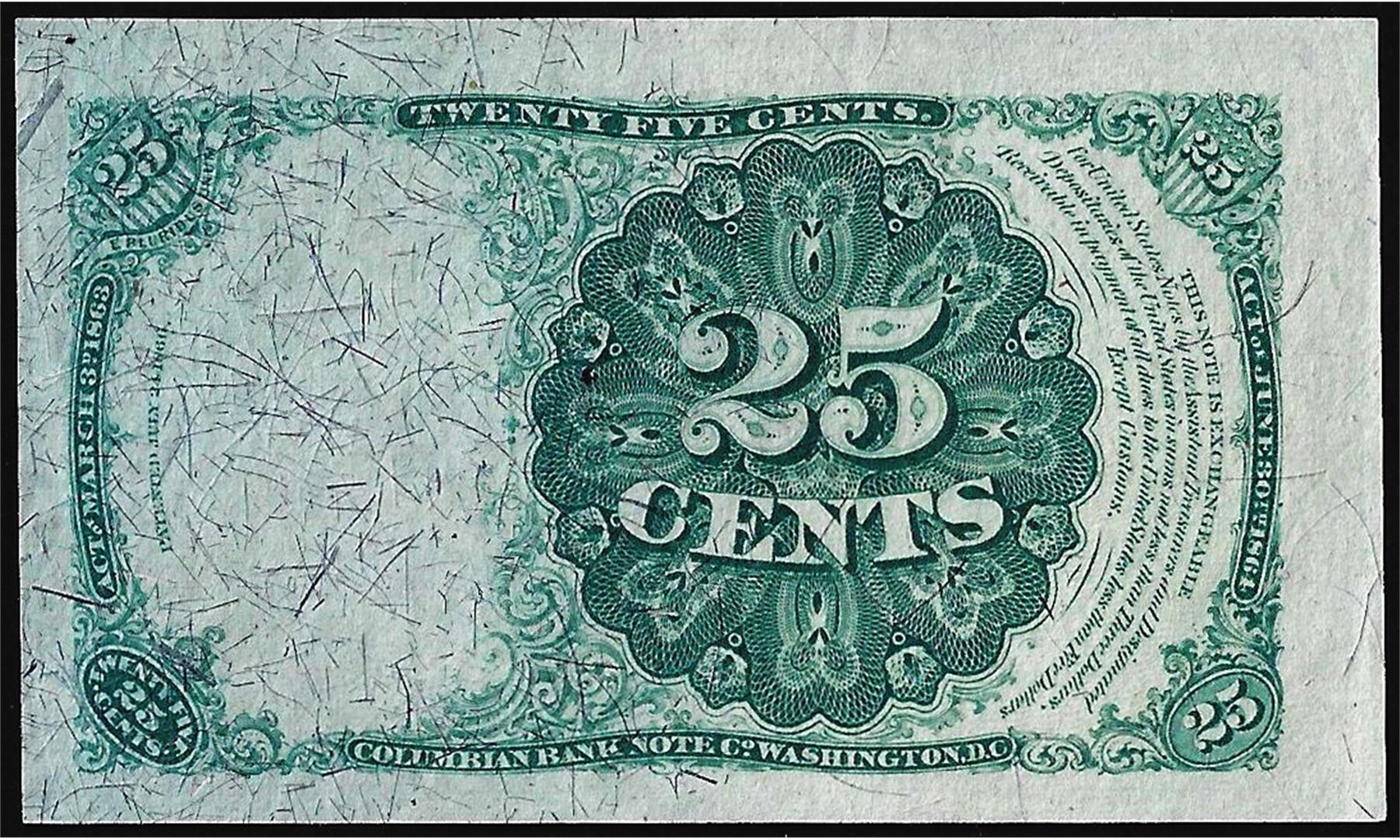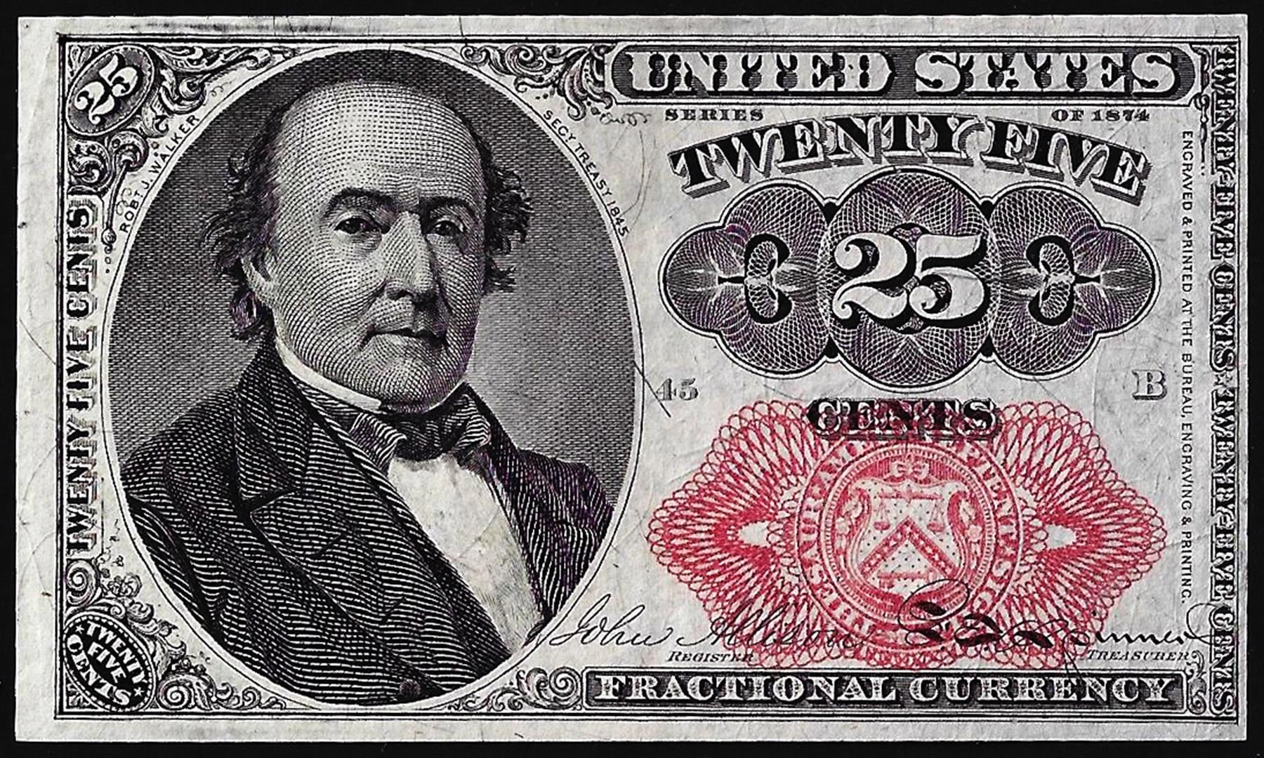 One 1874 25 Cents Fifth Issue Fractional Currency Note.
