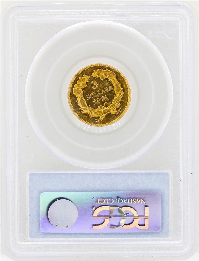 One 1874 $3 Indian Princess Head Gold Coin PCGS AU55. PCGS Graded.