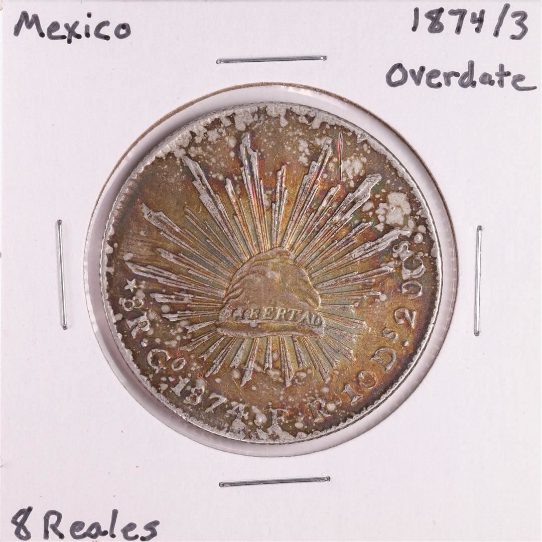 One 1874/3 Overdate Mexico 8 Reales Silver Coin.