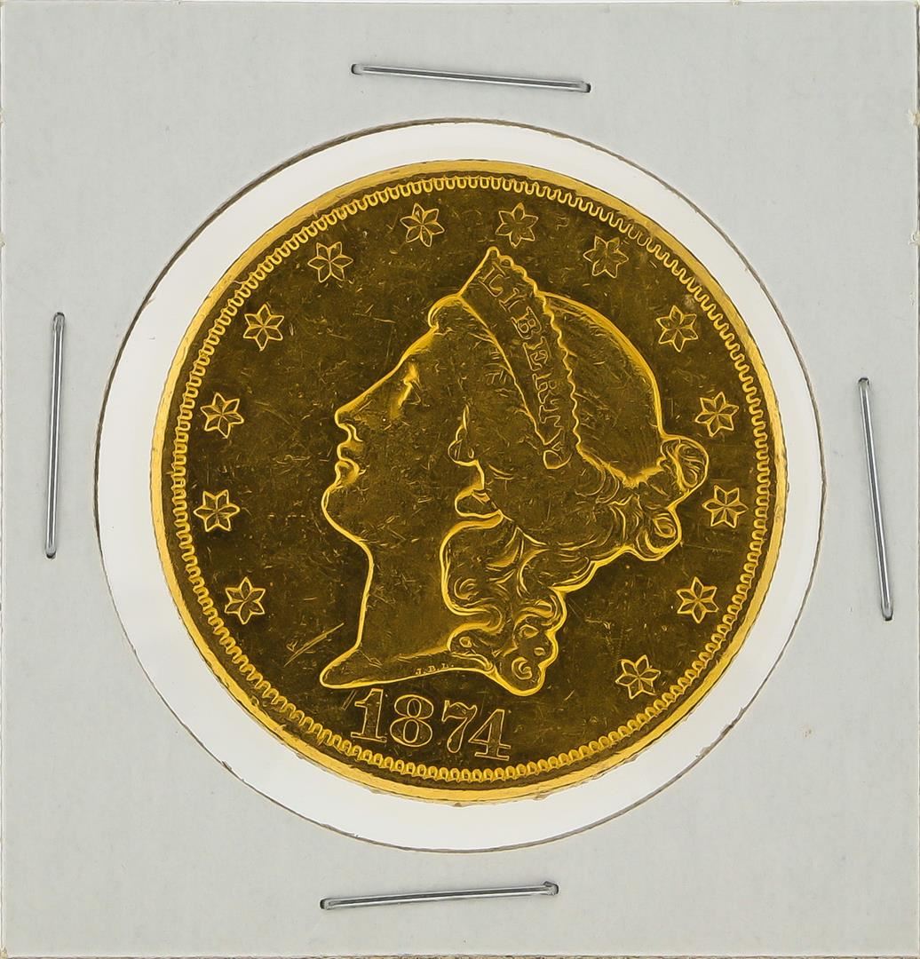 One 1874-CC $20 Liberty Head Double Eagle Gold Coin AU Details.