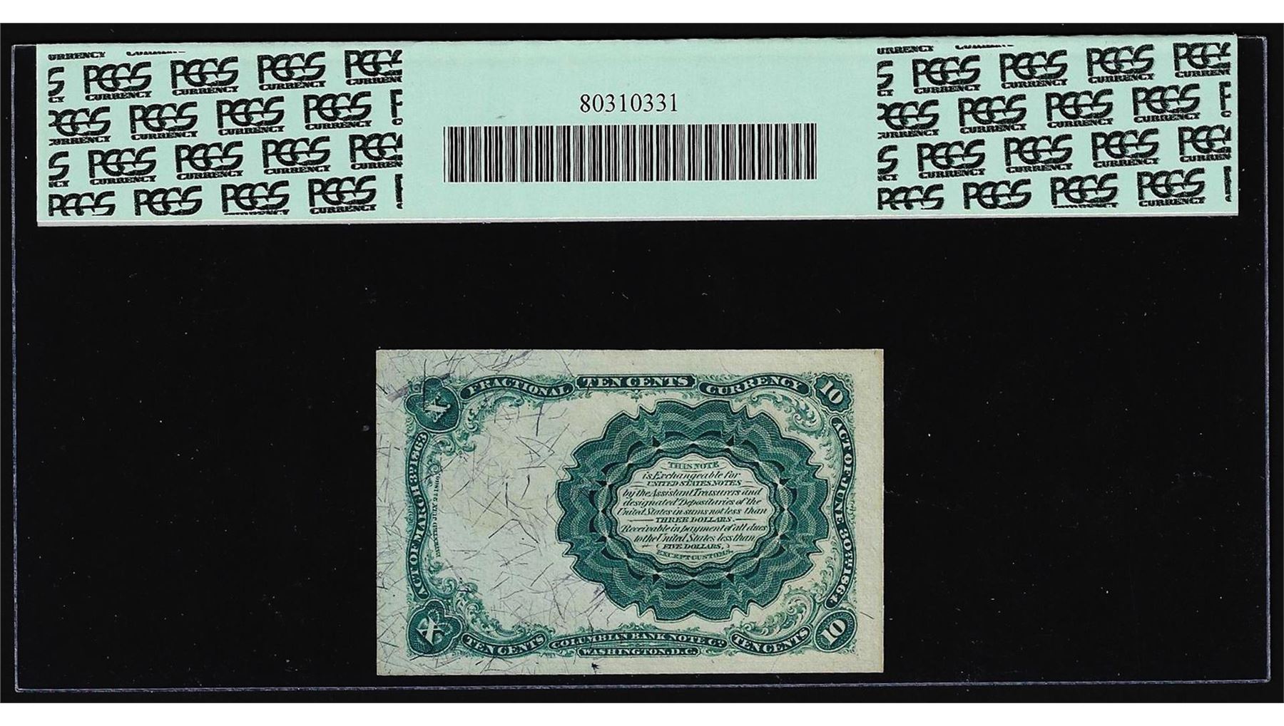 One 1874 Fifth Issue Ten Cent Fractional Currency Note Fr.1265 PCGS Gem New 65PPQ. PCGS Graded.