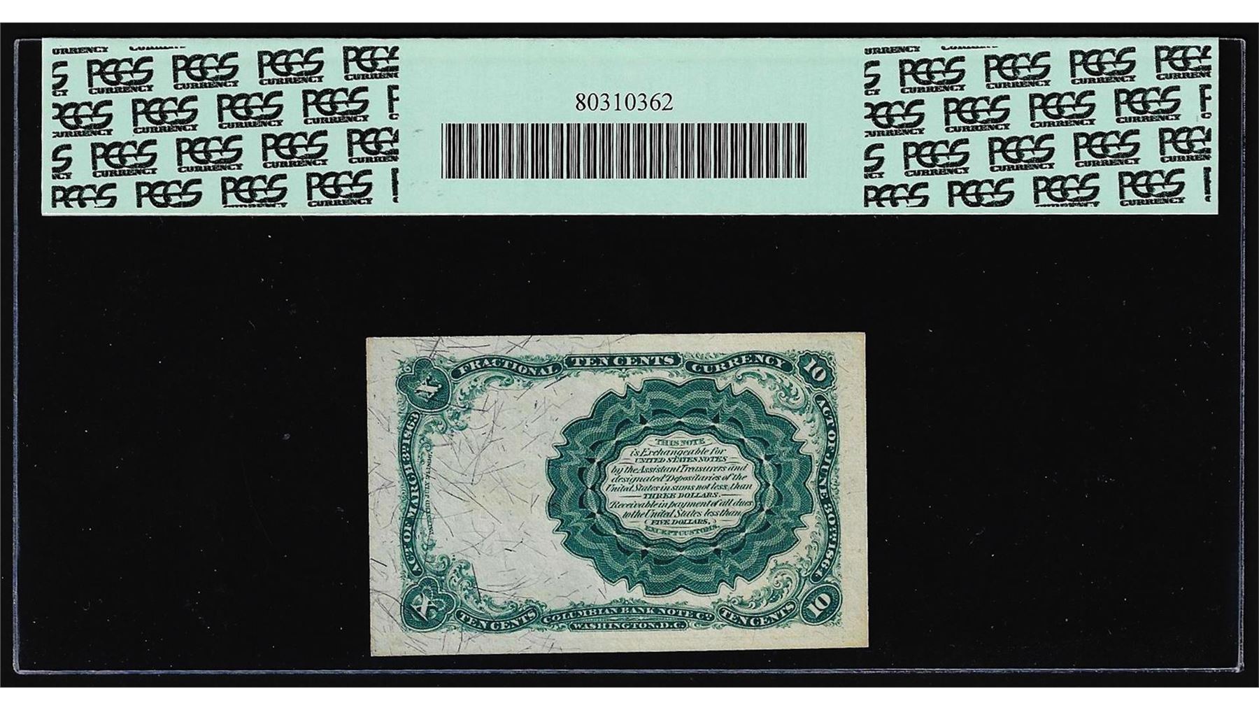 One 1874 Fifth Issue Ten Cent Fractional Currency Note Fr.1265 PCGS Gem New 65PPQ. PCGS Graded.