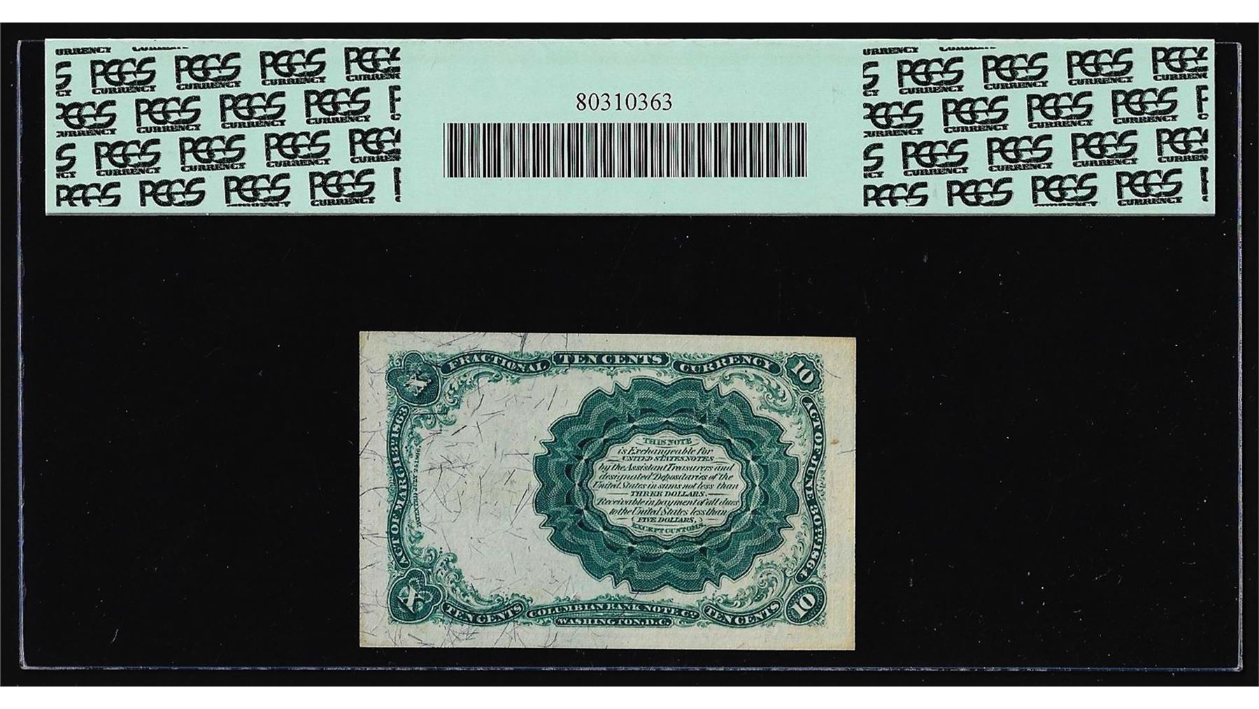 One 1874 Fifth Issue Ten Cent Fractional Currency Note Fr.1265 PCGS Gem New 65PPQ. PCGS Graded.