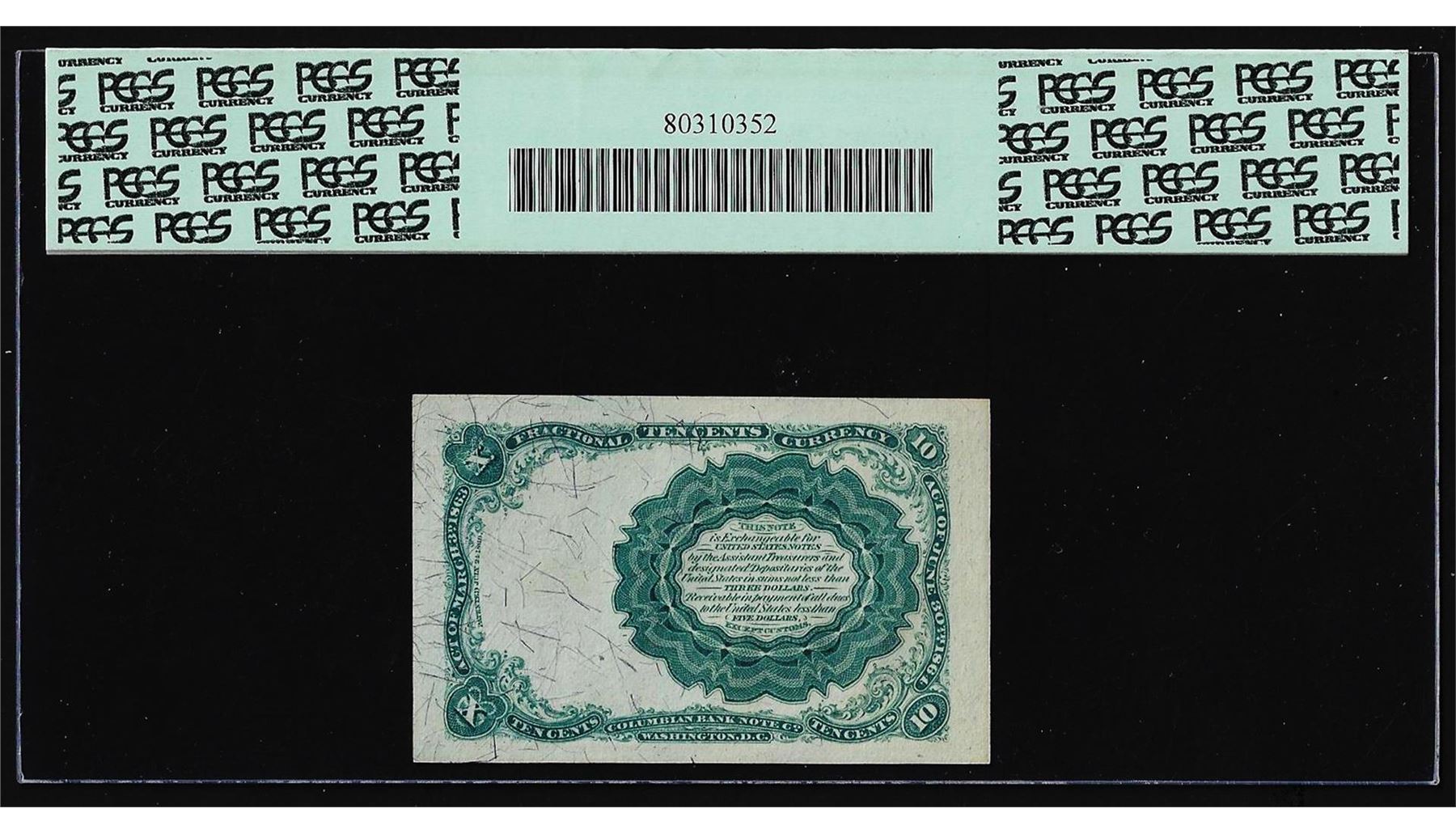 One 1874 Fifth Issue Ten Cent Fractional Currency Note Fr.1265 PCGS Gem New 66PPQ. PCGS Graded.