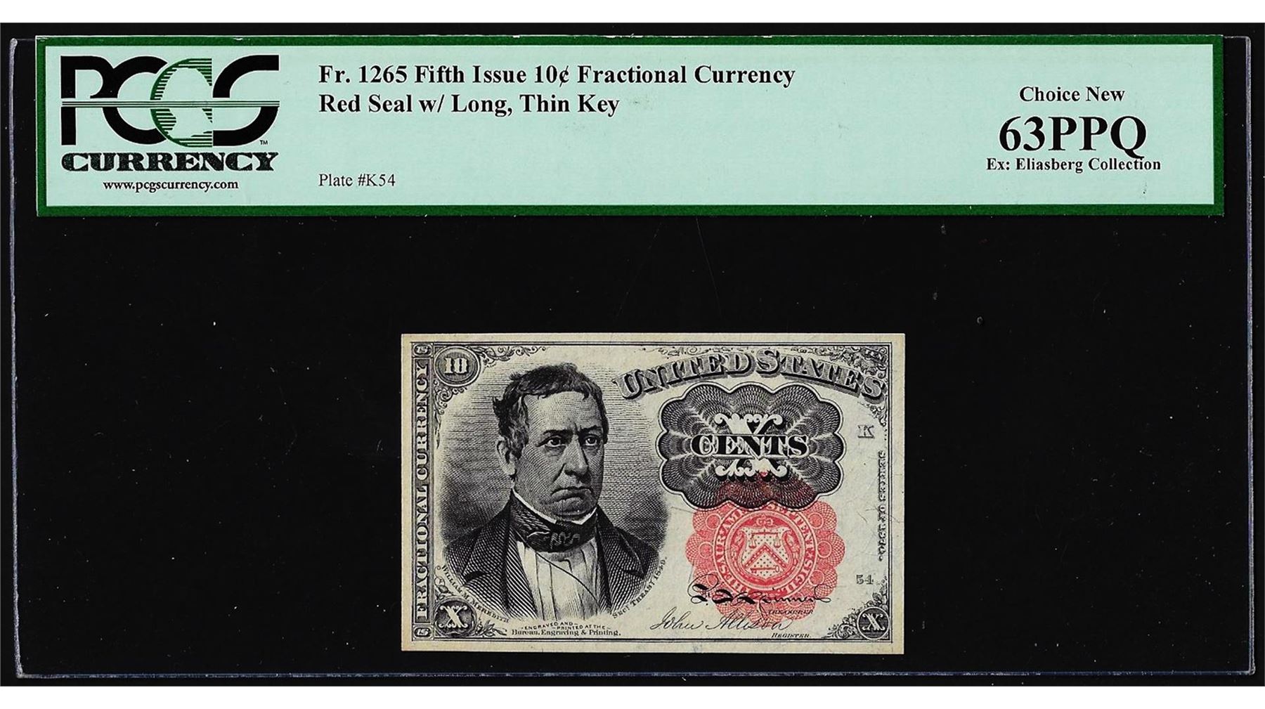 One 1874 Fifth Issue Ten Cent Fractional Currency Note PCGS Choice New 63PPQ. PCGS Graded.