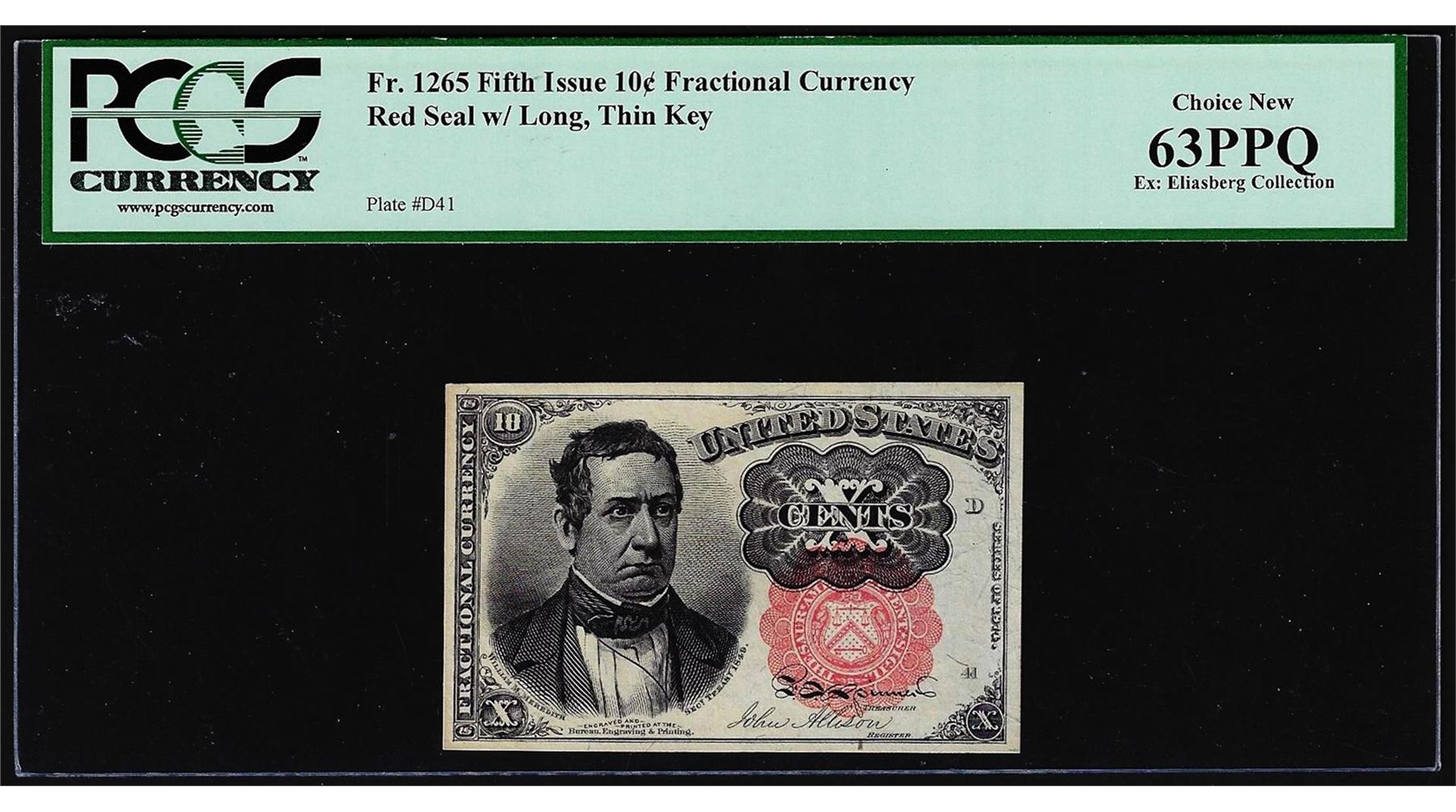 One 1874 Fifth Issue Ten Cent Fractional Currency Note PCGS Choice New 63PPQ. PCGS Graded.