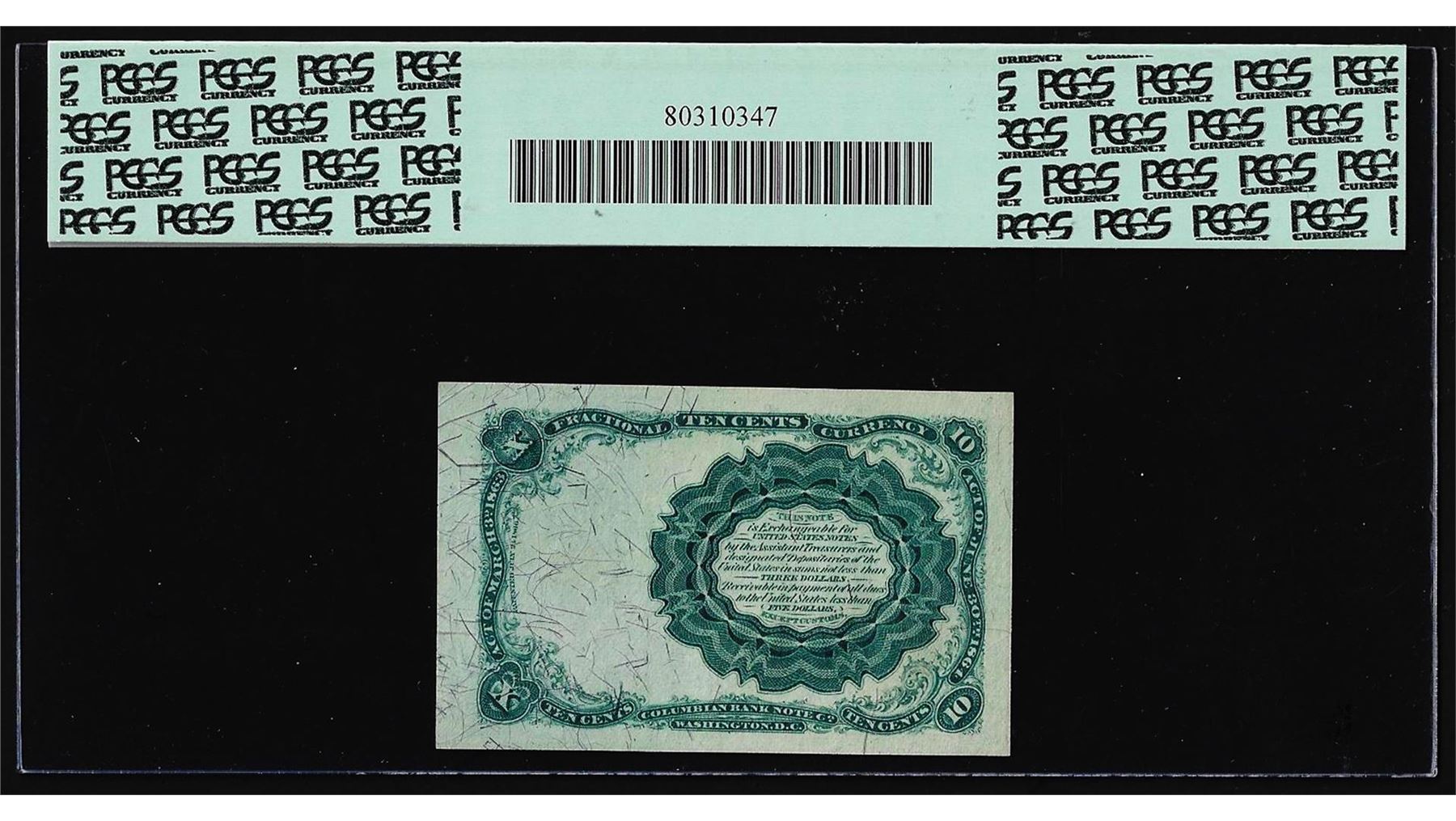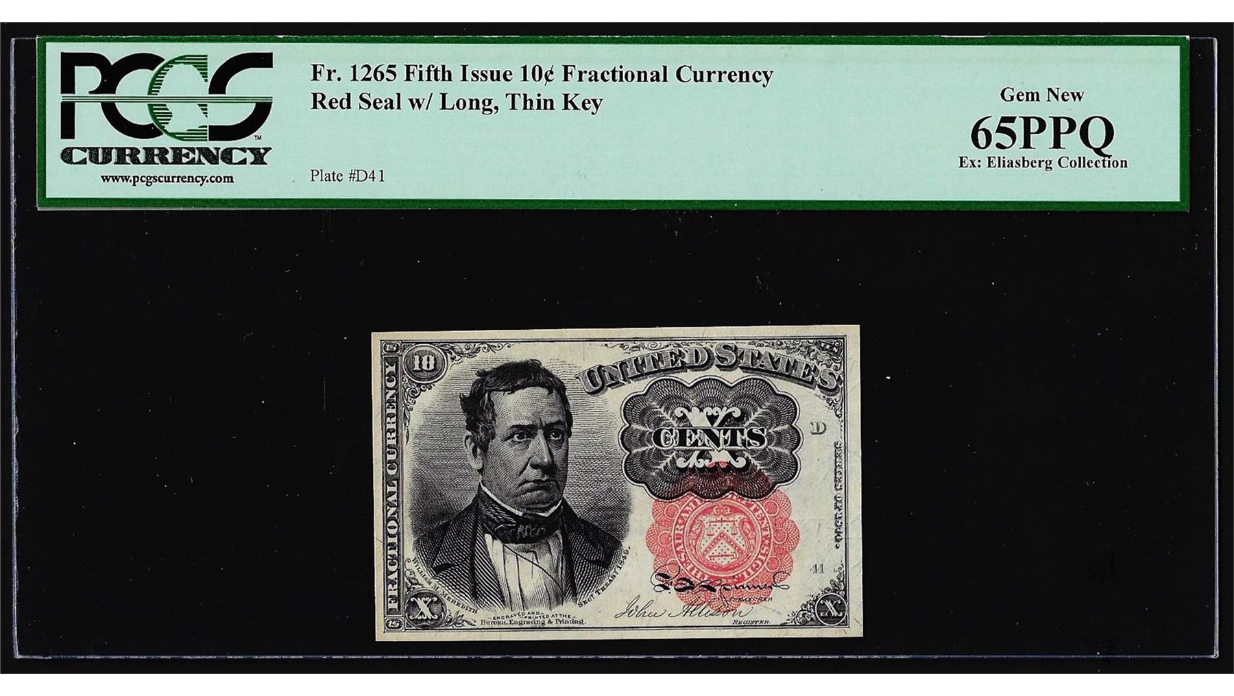 One 1874 Fifth Issue Ten Cent Fractional Currency Note PCGS Gem New 65PPQ. PCGS Graded.