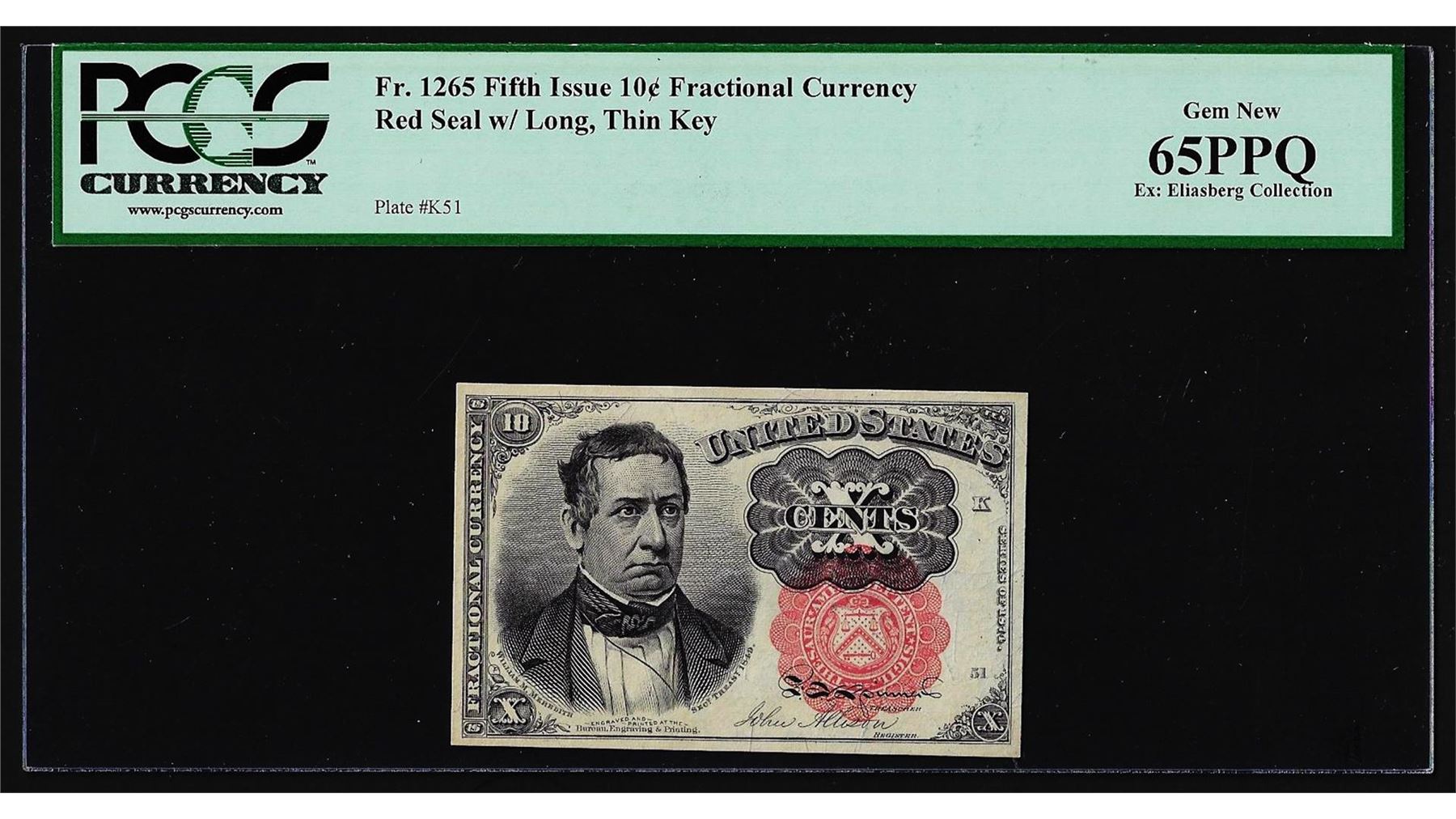 One 1874 Fifth Issue Ten Cent Fractional Currency Note PCGS Gem New 65PPQ. PCGS Graded.