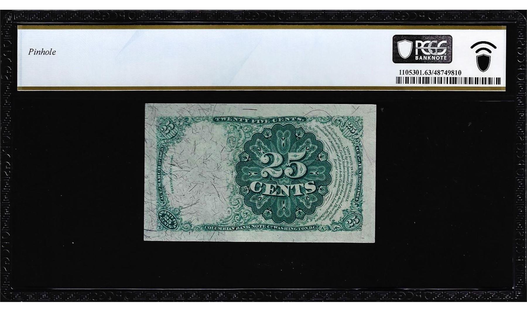 1874 Fifth Issue Twenty-Five Cents Fractional Currency Note Fr.1308 PCGS Choice Unc 63