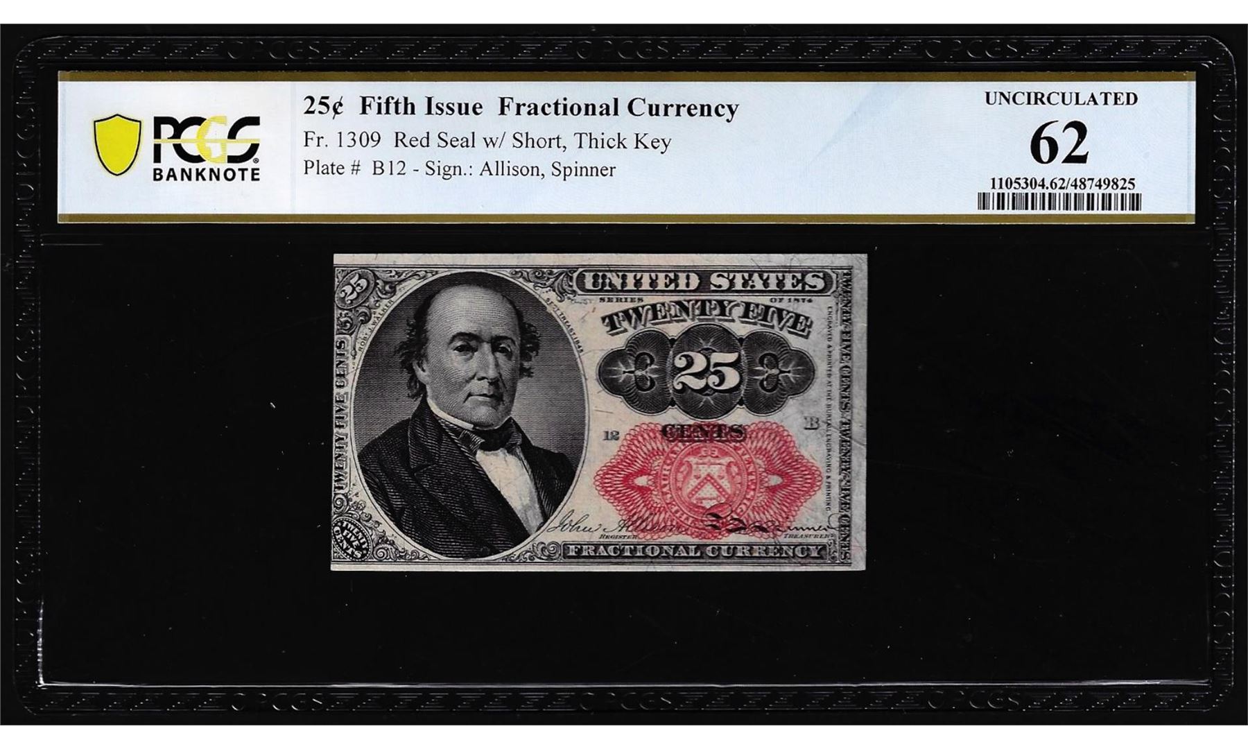 1874 Fifth Issue Twenty-Five Cents Fractional Currency Note Fr.1309 PCGS Uncirculated 62