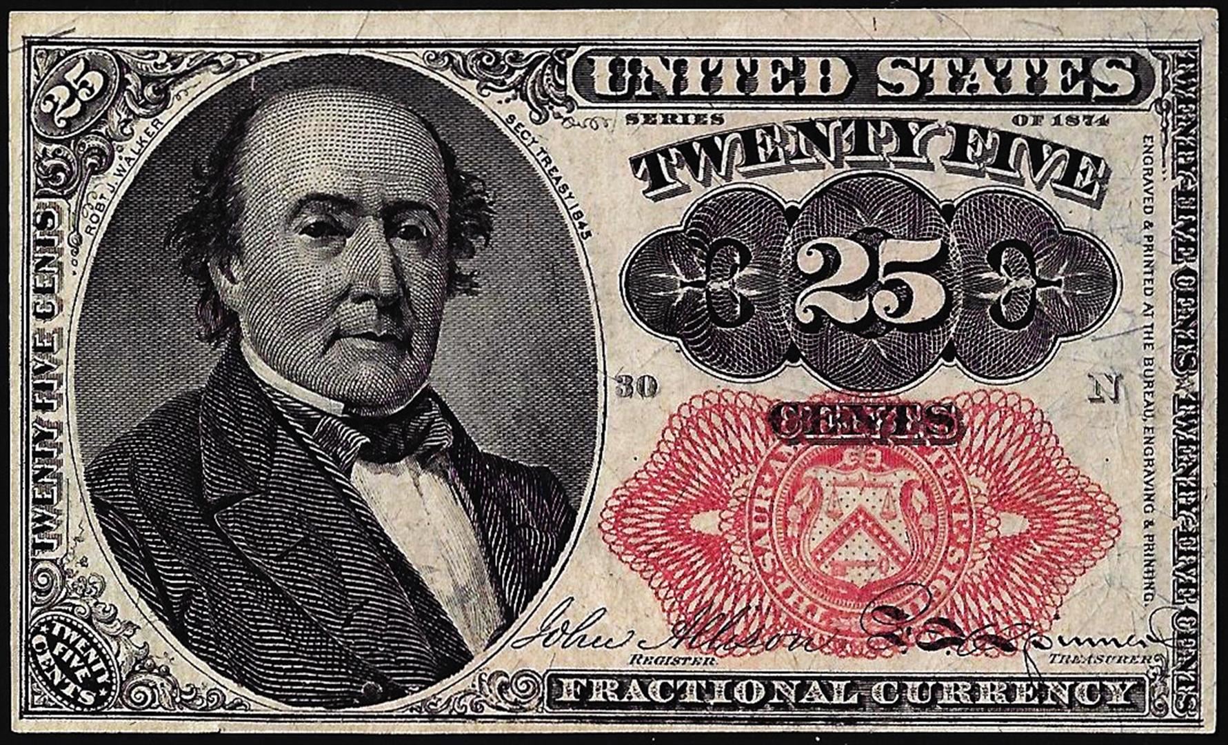 1874 Fifth Issue Twenty Five Cents Fractional Currency Note