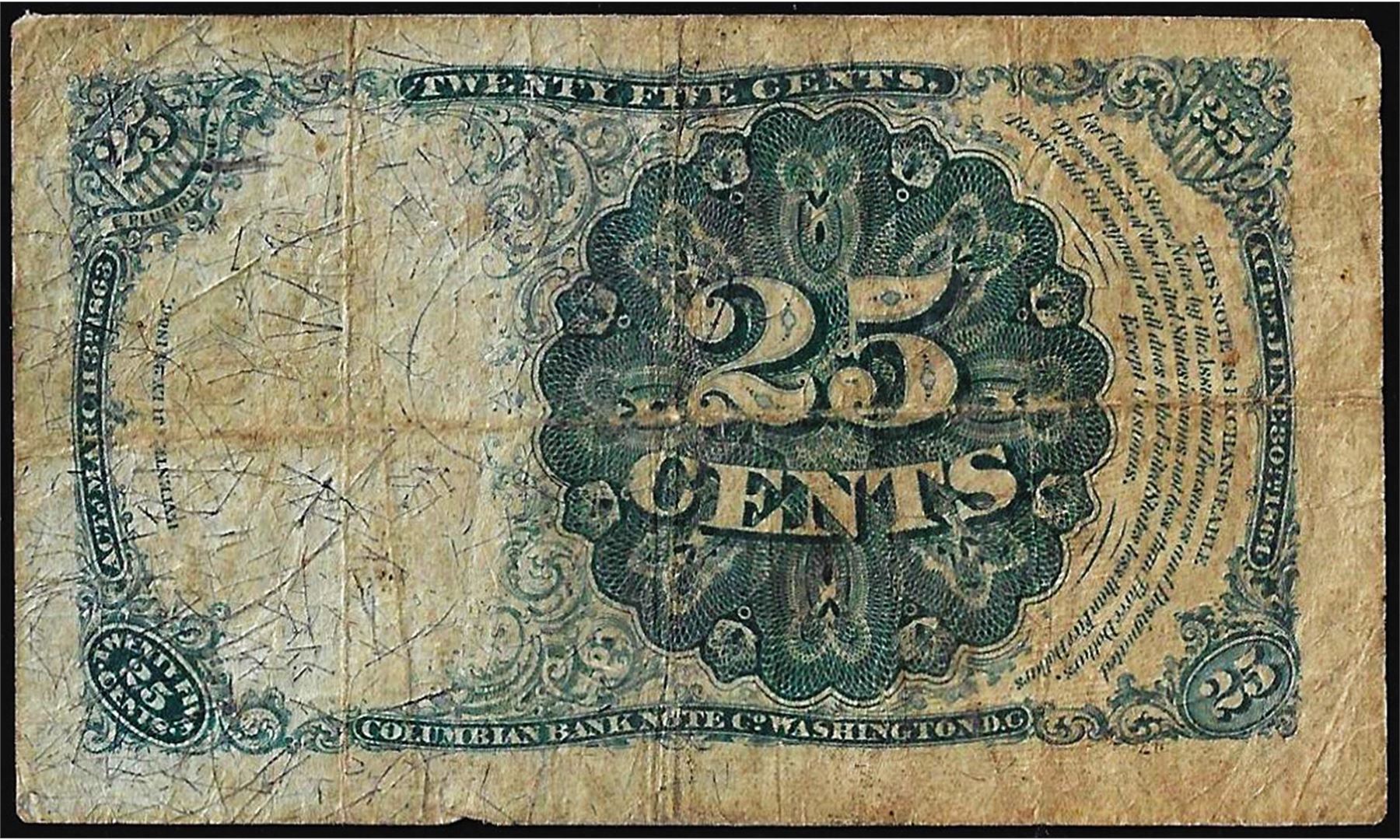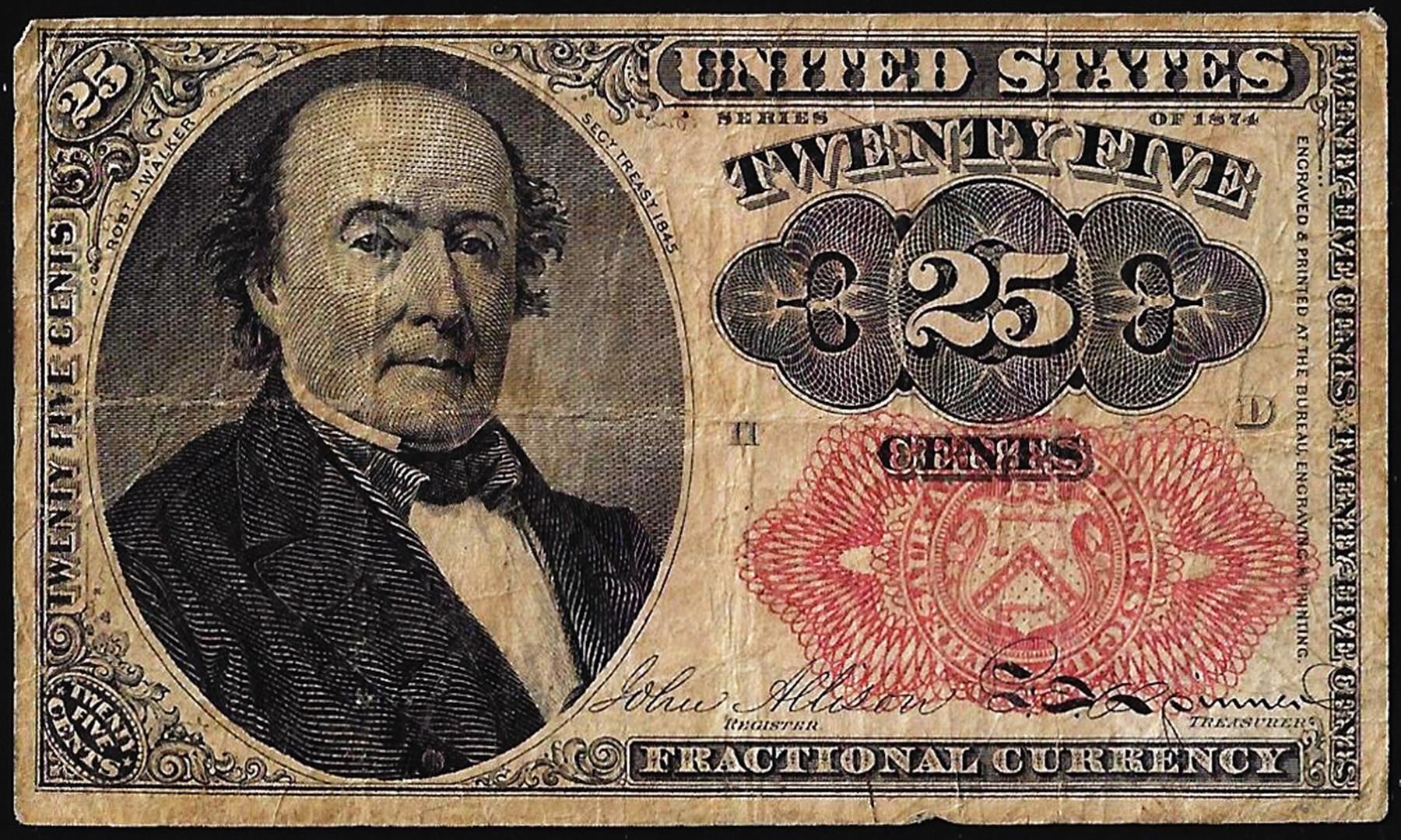 1874 Fifth Issue Twenty Five Cents Fractional Currency Note