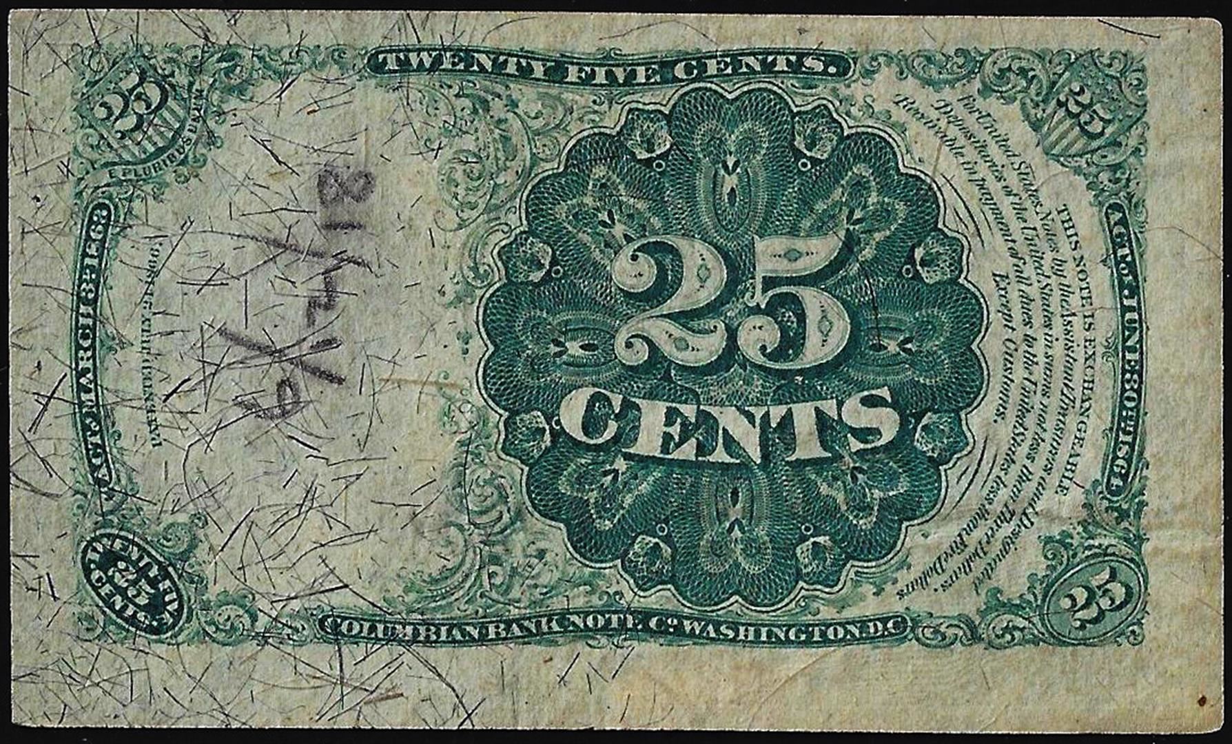 1874 Fifth Issue Twenty-Five Cents Fractional Currency Note