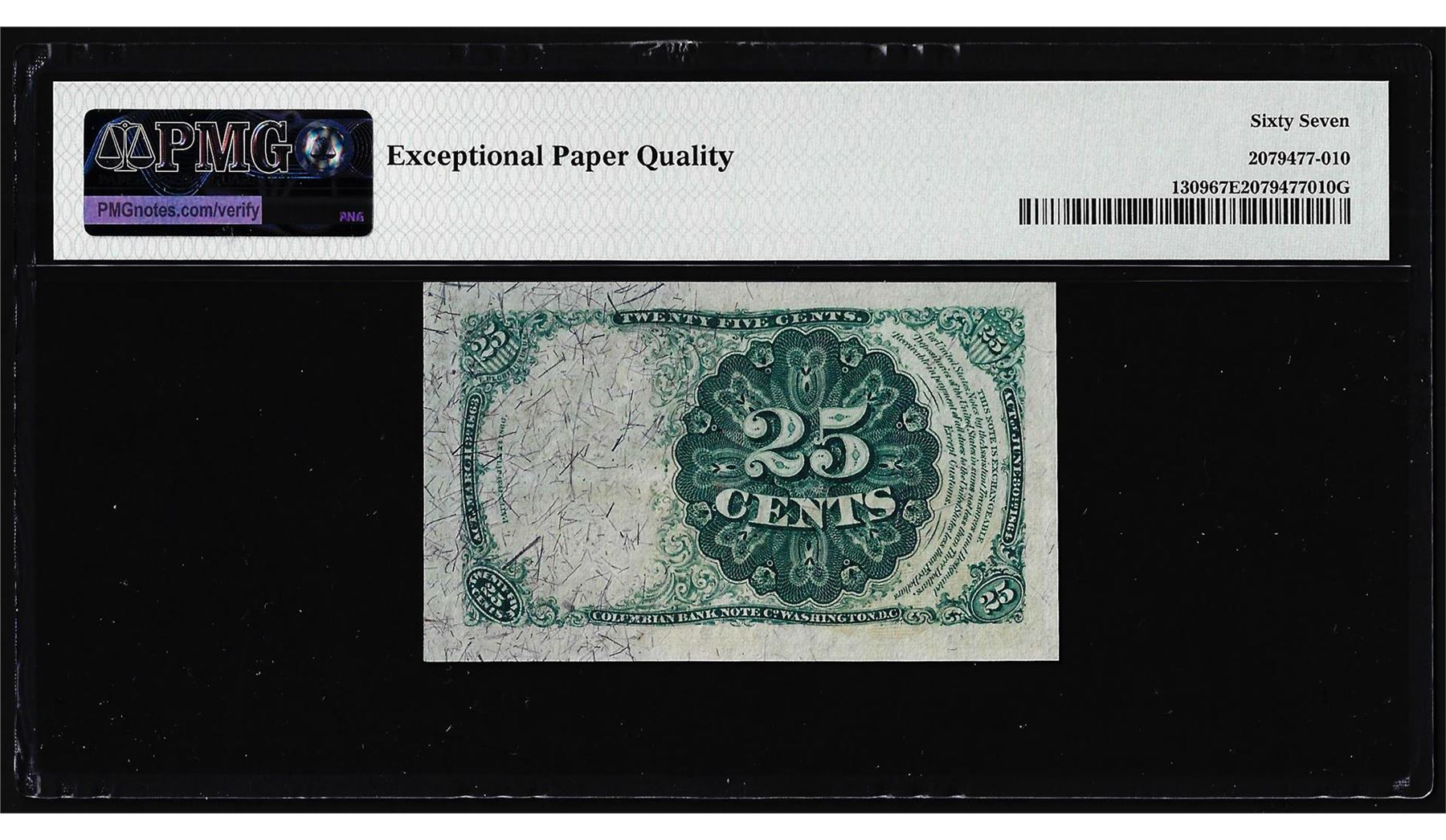 One 1874 Fifth Issue Twenty-Five Cents Fractional Note Fr.1309 PMG Superb Gem Uncirculated 67EPQ. PMG Certified.