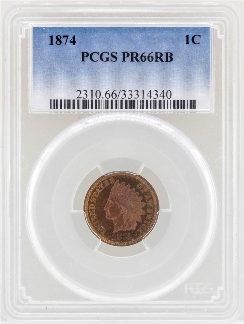 One 1874 Indian Head Cent Coin PCGS PR66RB. PCGS Graded.