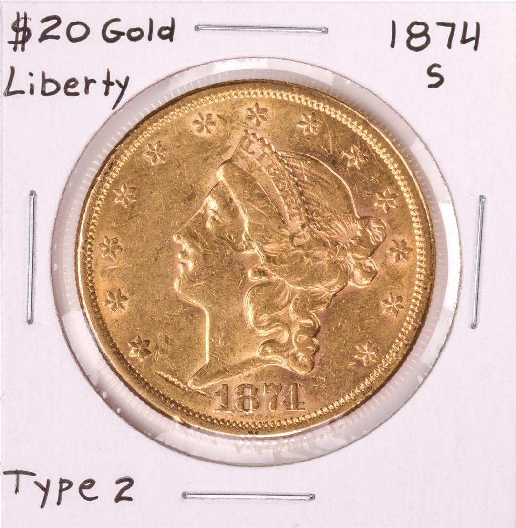 One 1874-S Type 2 $20 Liberty Head Double Eagle Gold Coin.