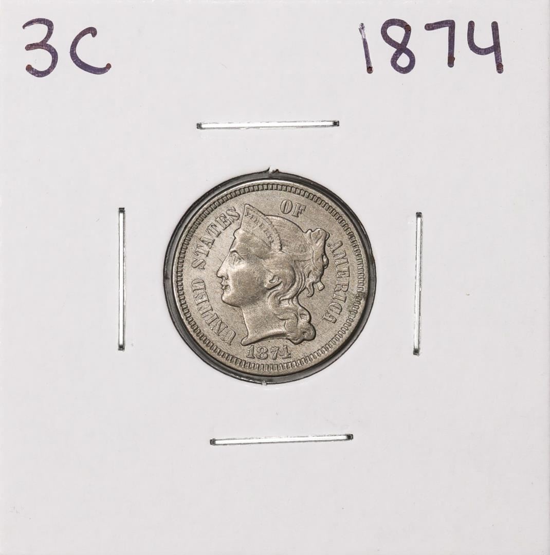 One 1874 Three Cent Nickel Coin.