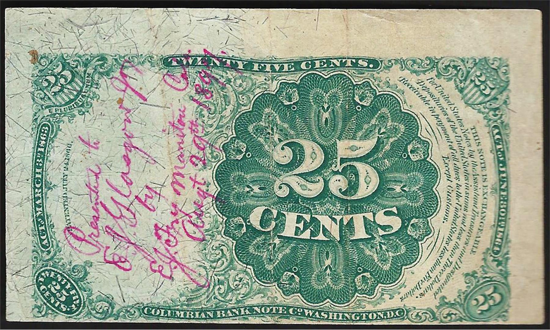 1874 Twenty-Five Cent 5th Issue Fractional Note w/Personal Note