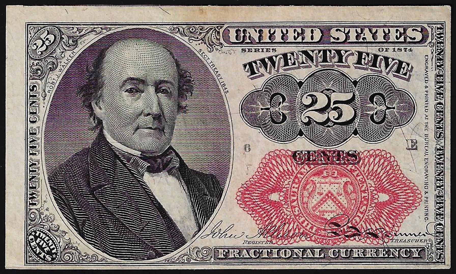 One 1874 Twenty-Five Cent 5th Issue Fractional Note.