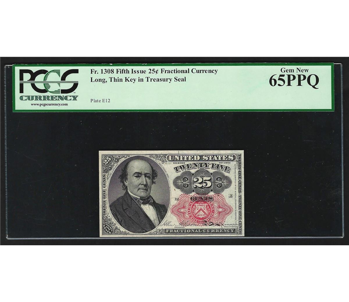 1874 Twenty Five Cents Fractional Currency Note PCGS Gem New 65PPQ