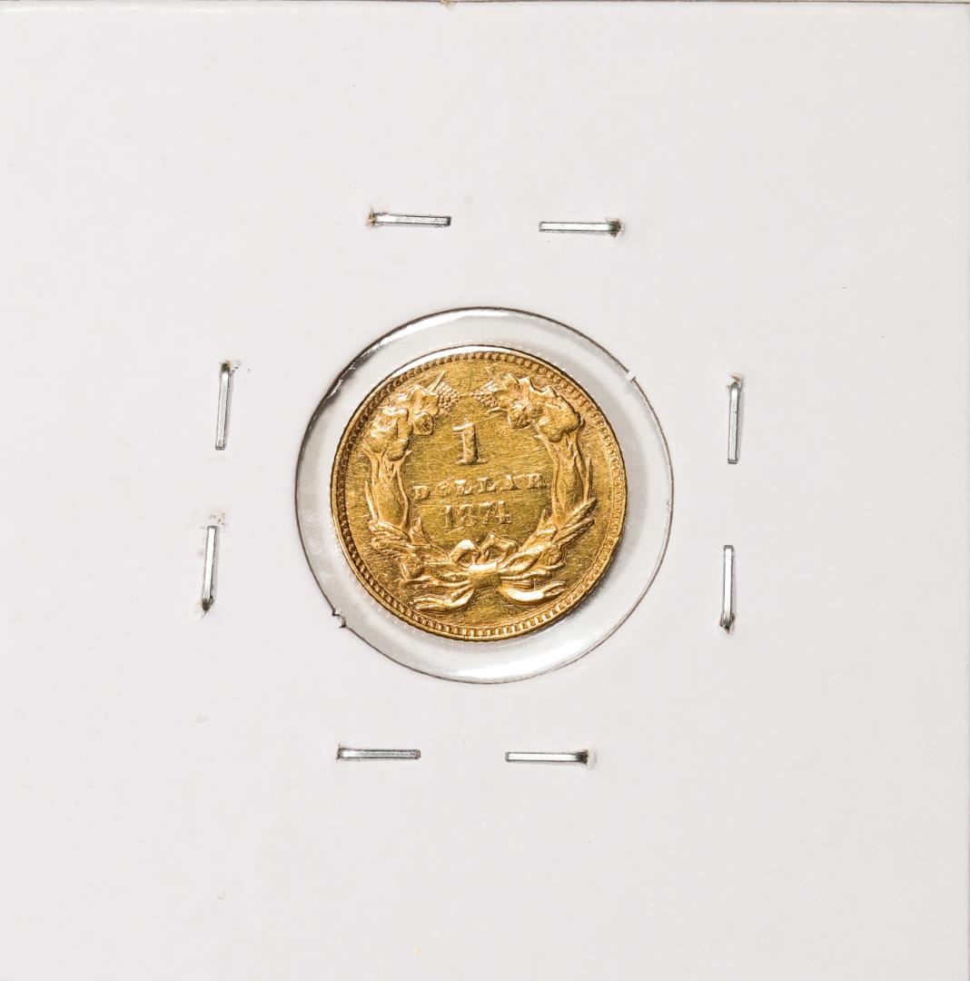 One 1874 Type 3 $1 Indian Princess Head Gold Dollar Coin.