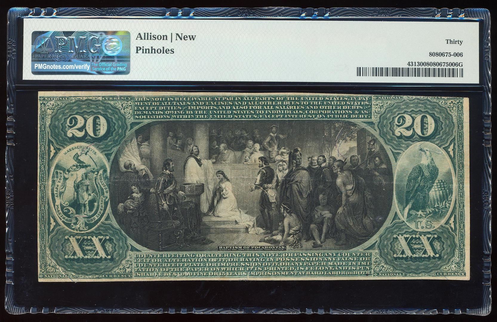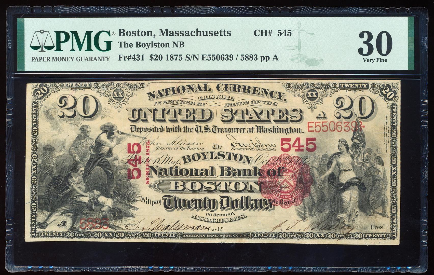 One 1875 $20 First Charter NB Boston, MA CH# 545 National Currency Note PMG Very Fine 30> PMG Certified.