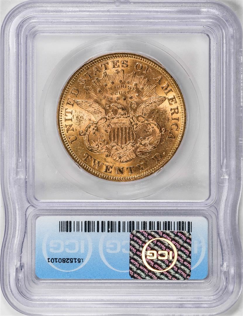 One 1875 $20 Liberty Head Double Eagle Gold Coin ICG MS61. ICG Certified.