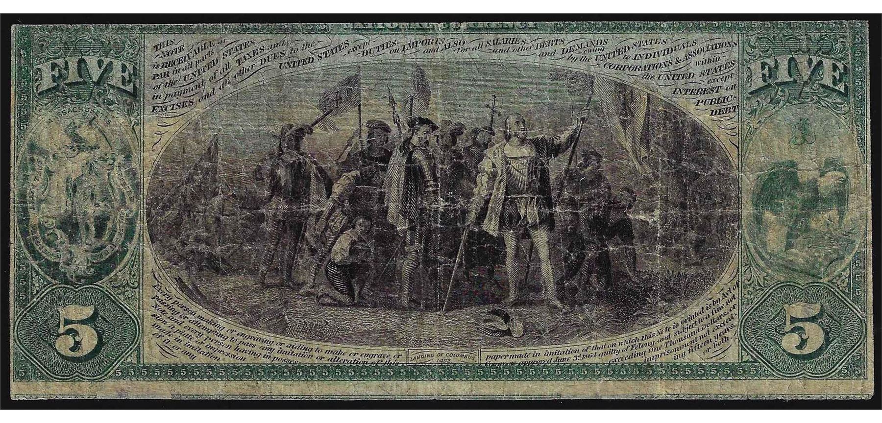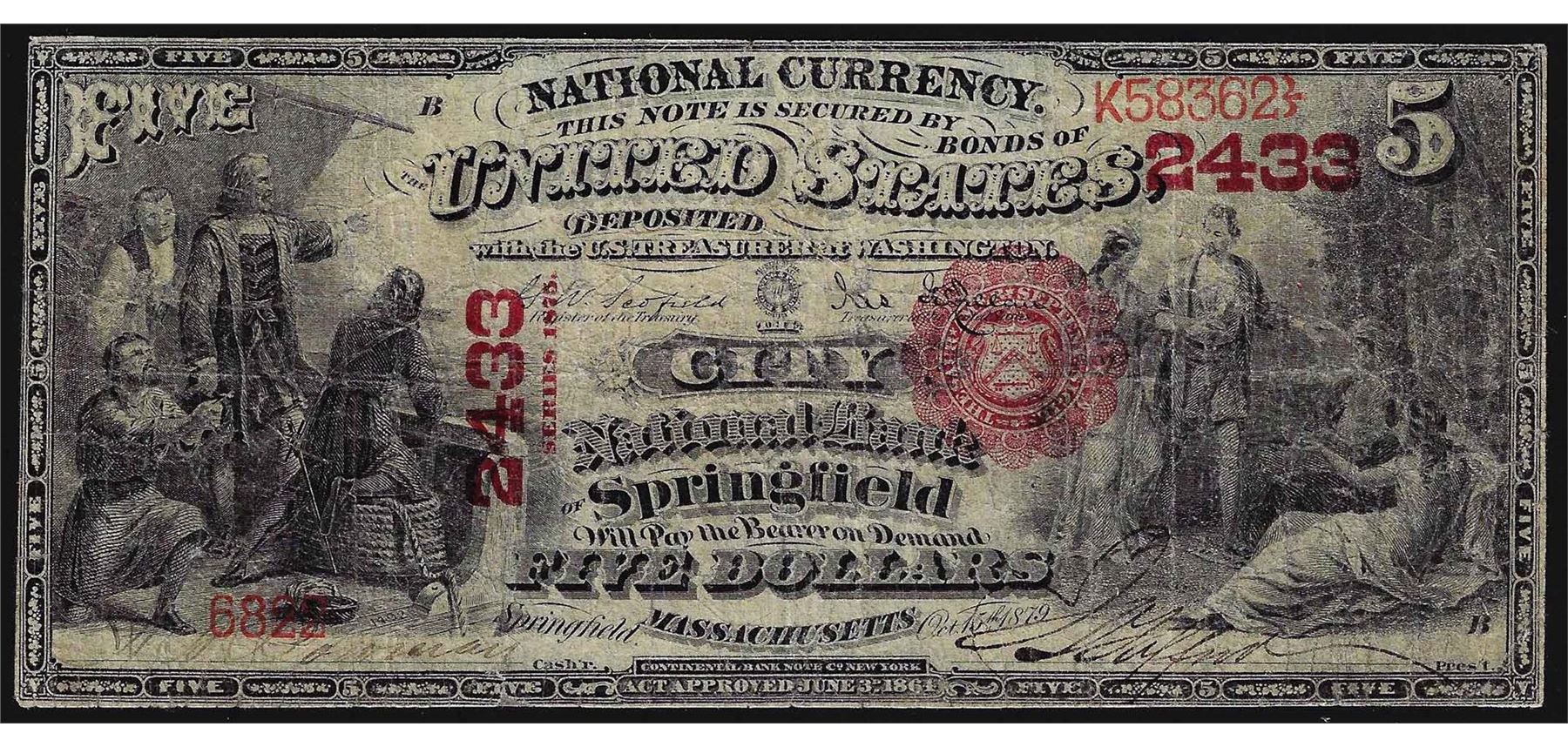 One 1875 $5 National Bank of Springfield National Currency Note.