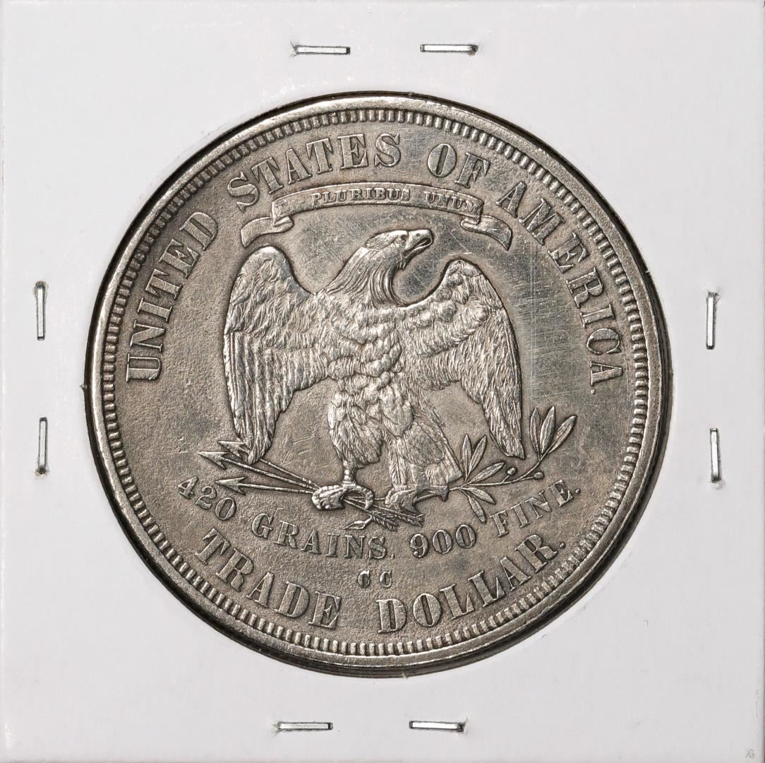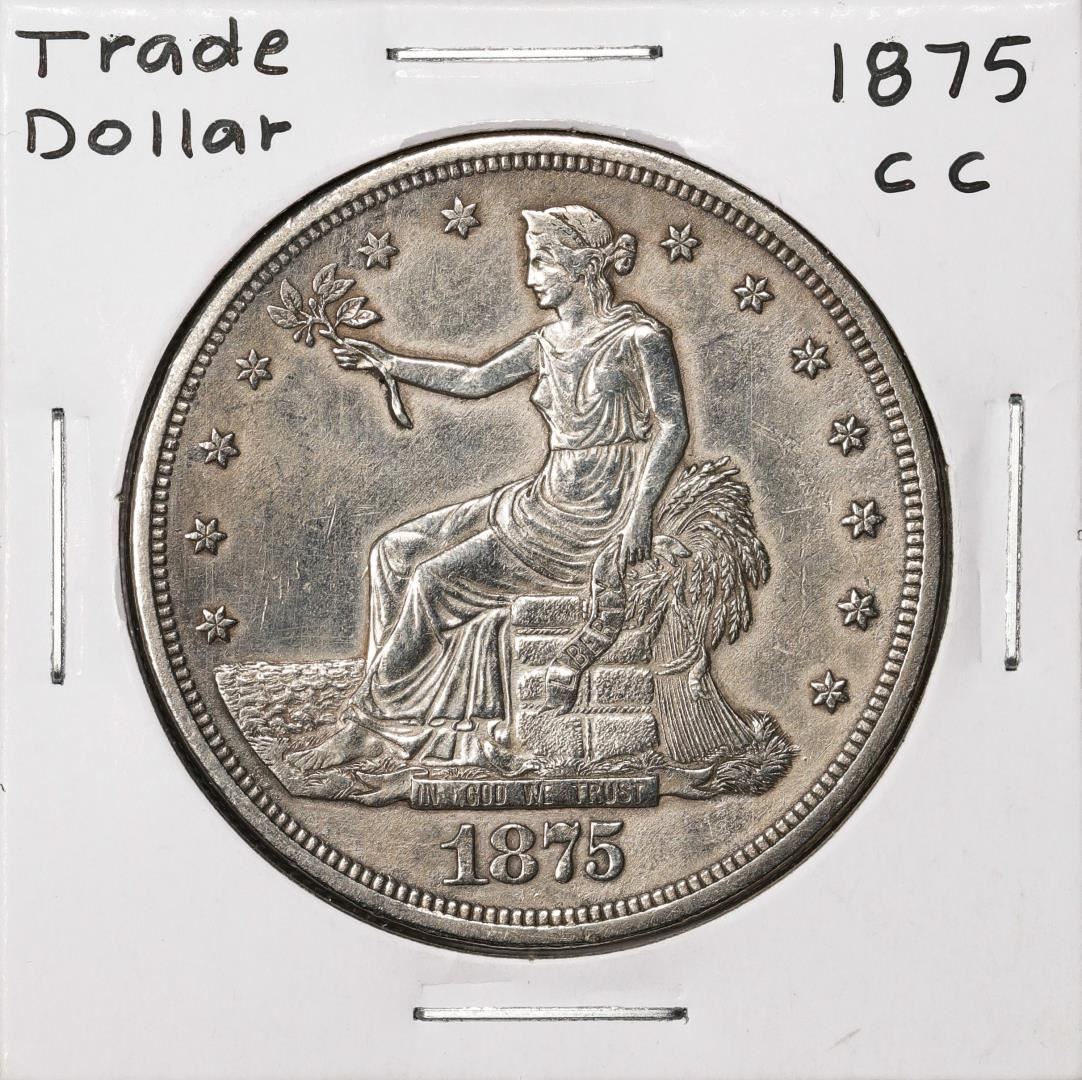 One 1875-CC $1 Trade Silver Dollar Coin.
