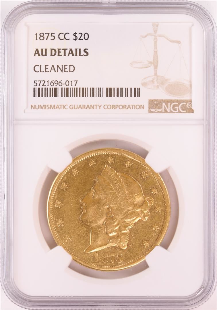 One 1875-CC $20 Liberty Head Double Eagle Gold Coin NGC AU Details. NGC Certified.