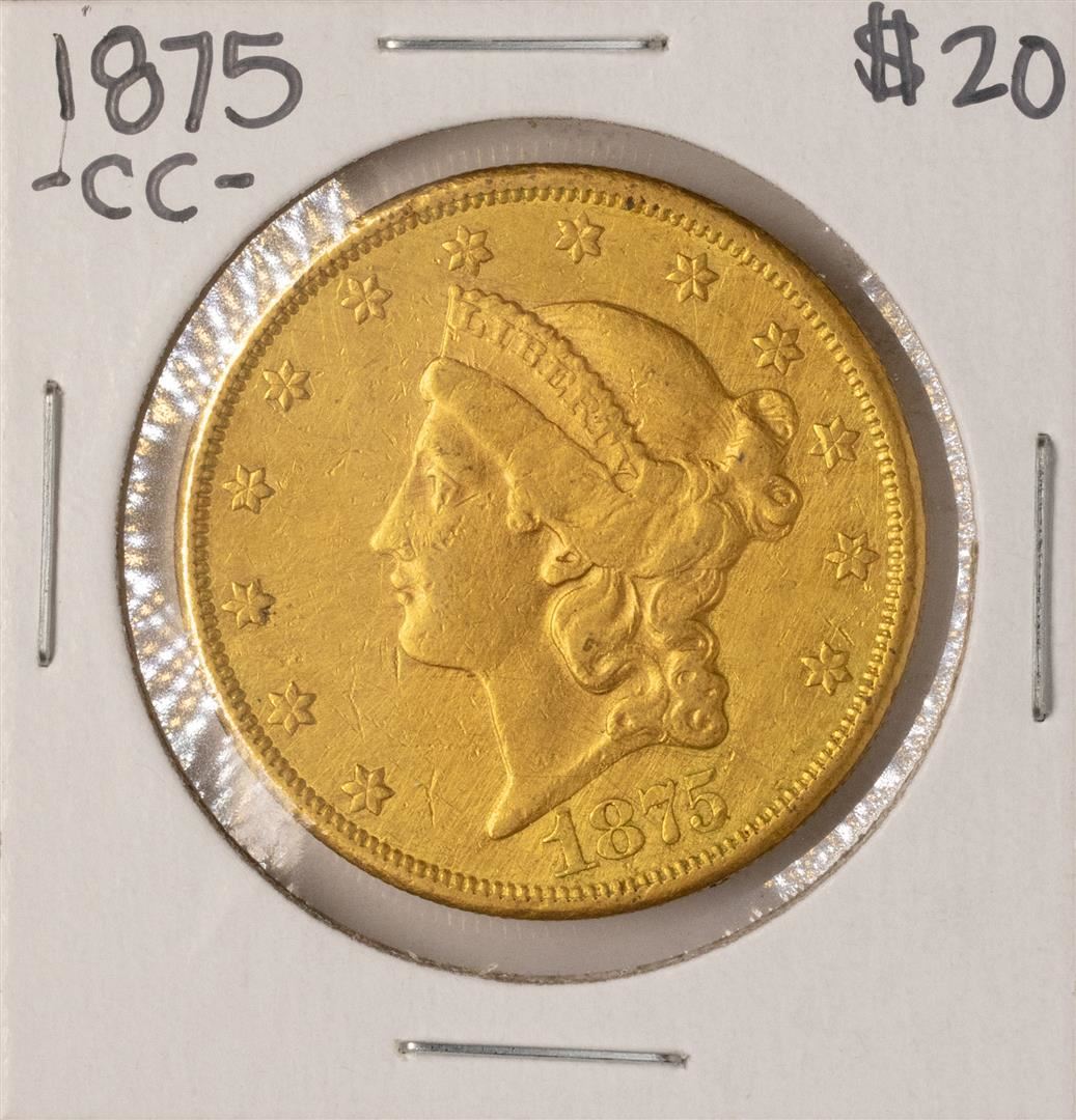 One 1875-CC $20 Liberty Head Double Eagle Gold Coin.