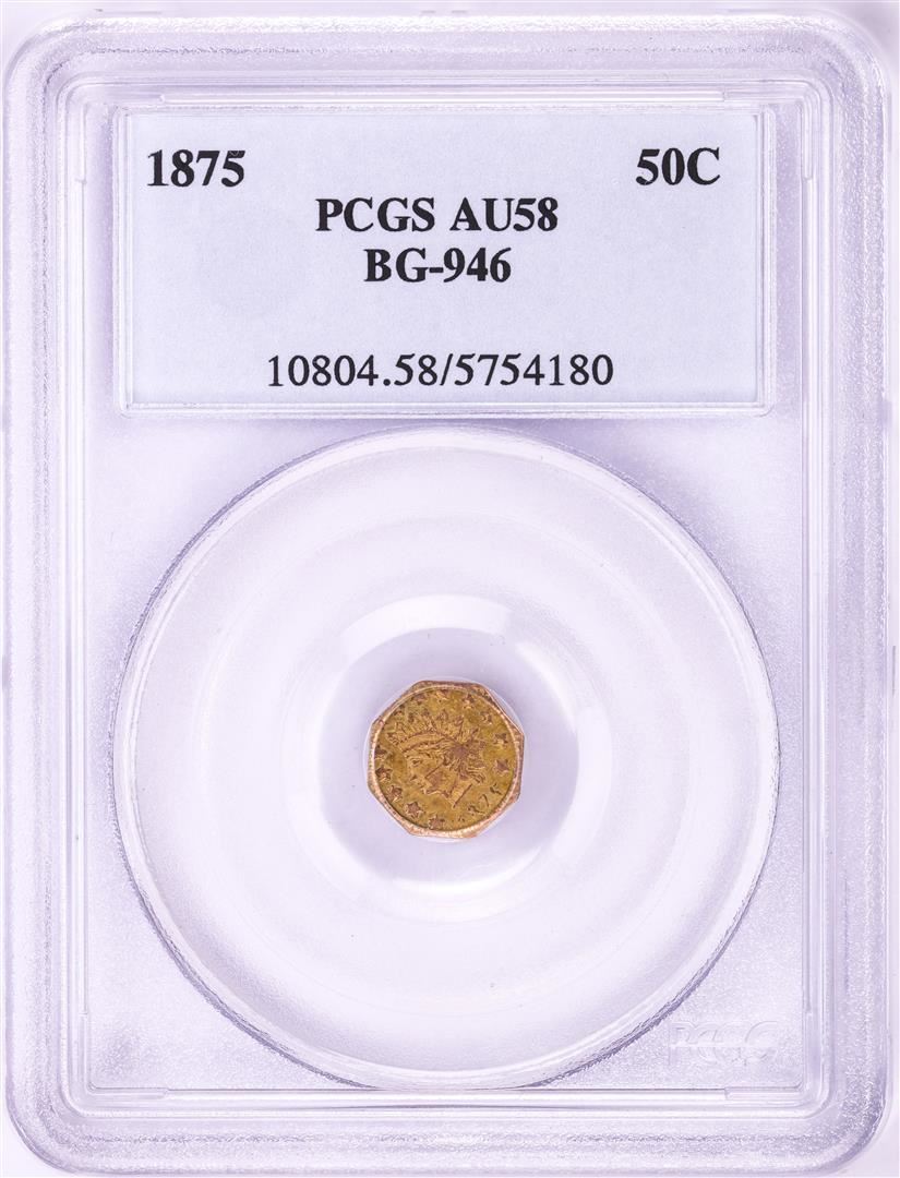 1875 California Fractional Octagonal Gold Half Dollar Coin PCGS AU58 BG-946