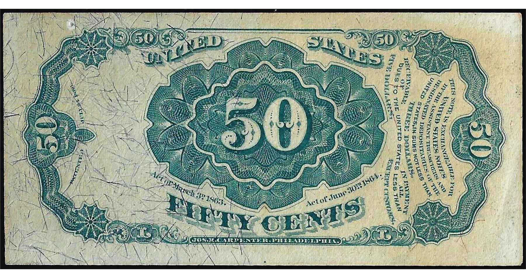 One 1875 Fifth Issue Fifty Cents Fractional Currency Note.