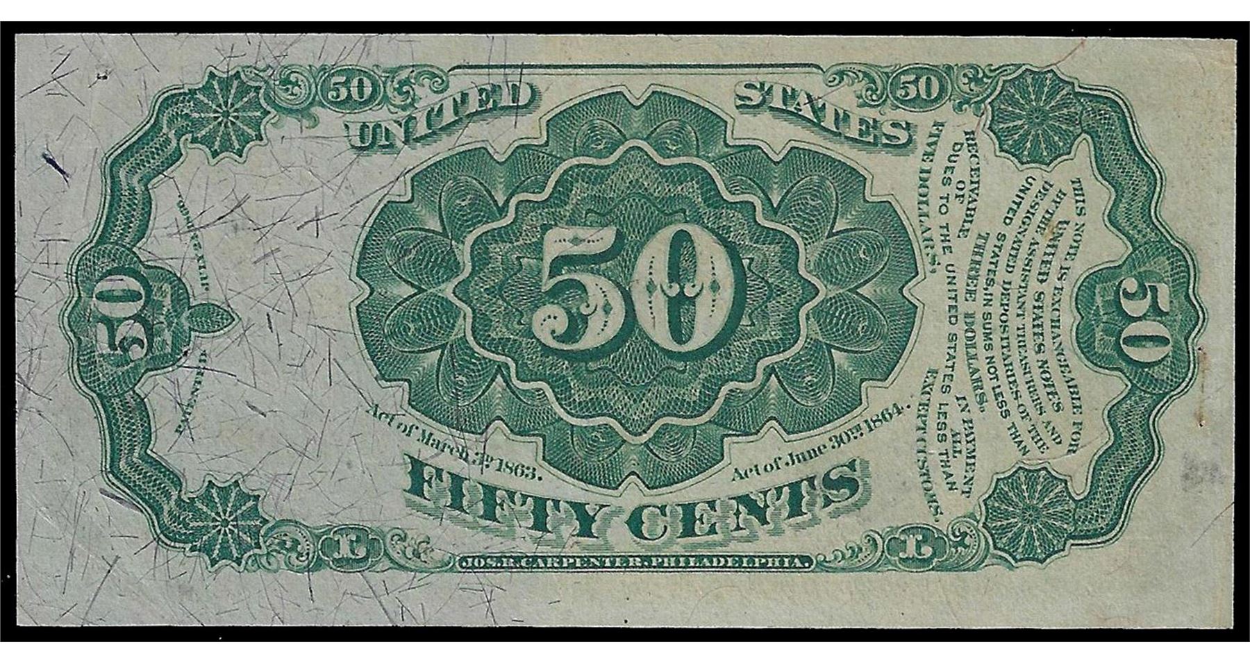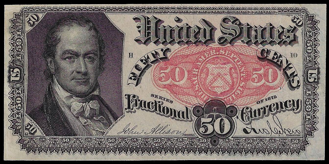 One 1875 Fifty Cents Fifth Issue Fractional Currency Note.