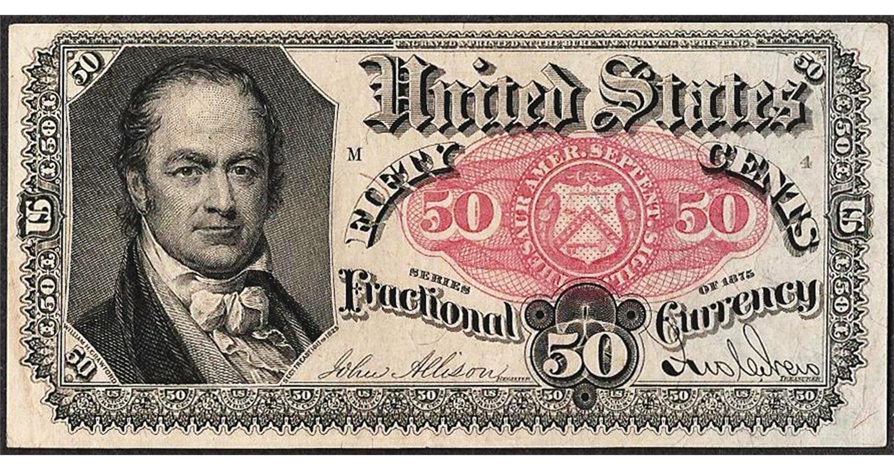 One 1875 Fifty Cents Fifth Issue Fractional Currency Note.