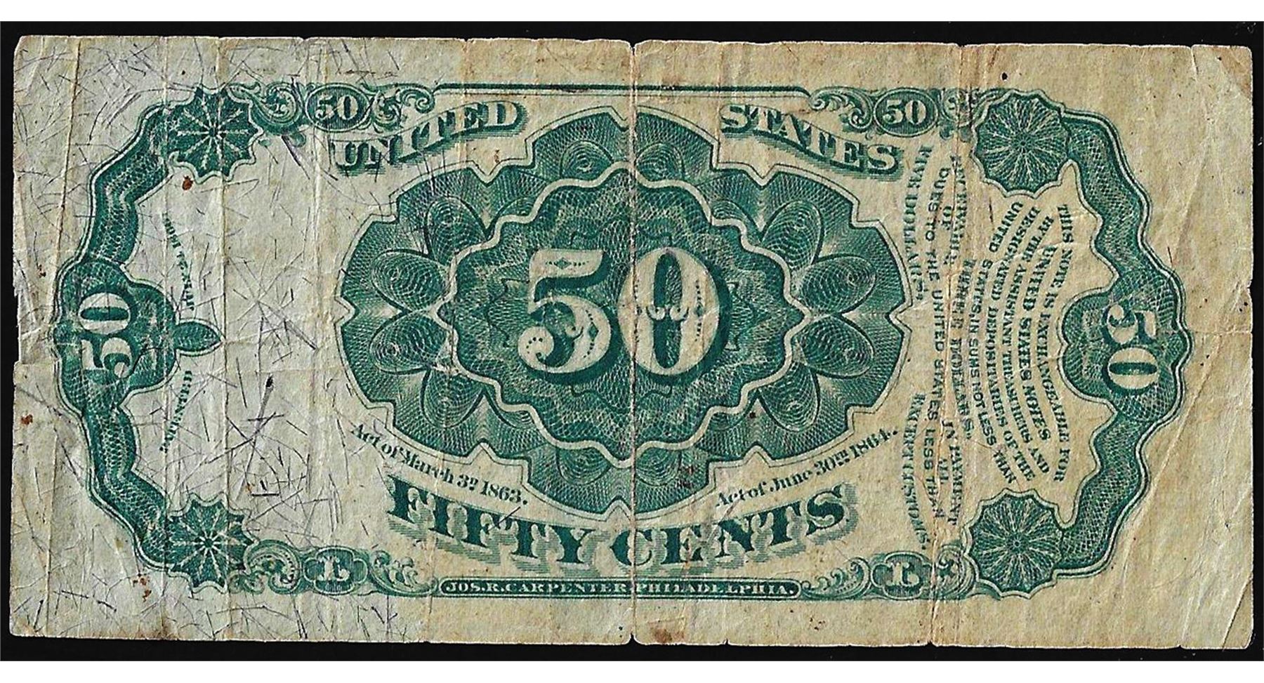 One 1875 Fifty Cents Fifth Issue Fractional Currency Note.