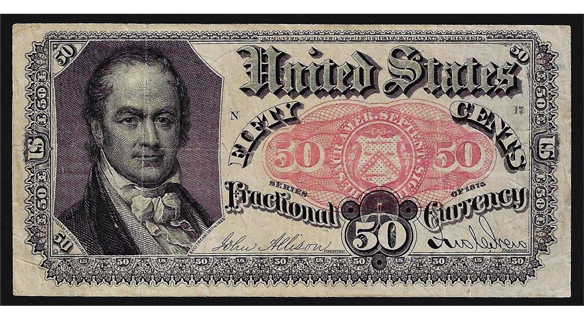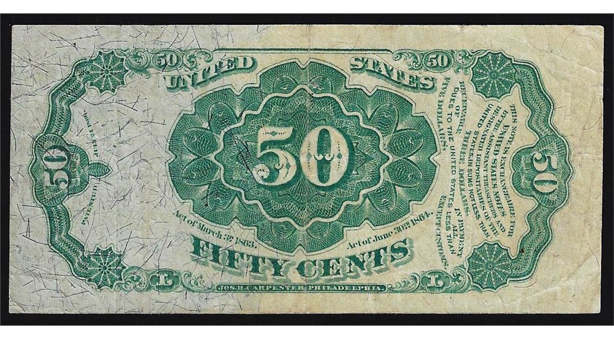 One 1875 Fifty Cents Fifth Issue Fractional Note.