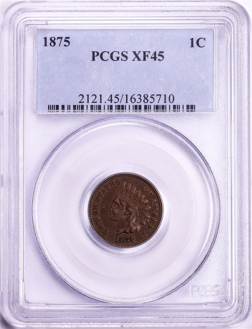 One 1875 Indian Head Cent Coin PCGS XF45. PCGS Graded.