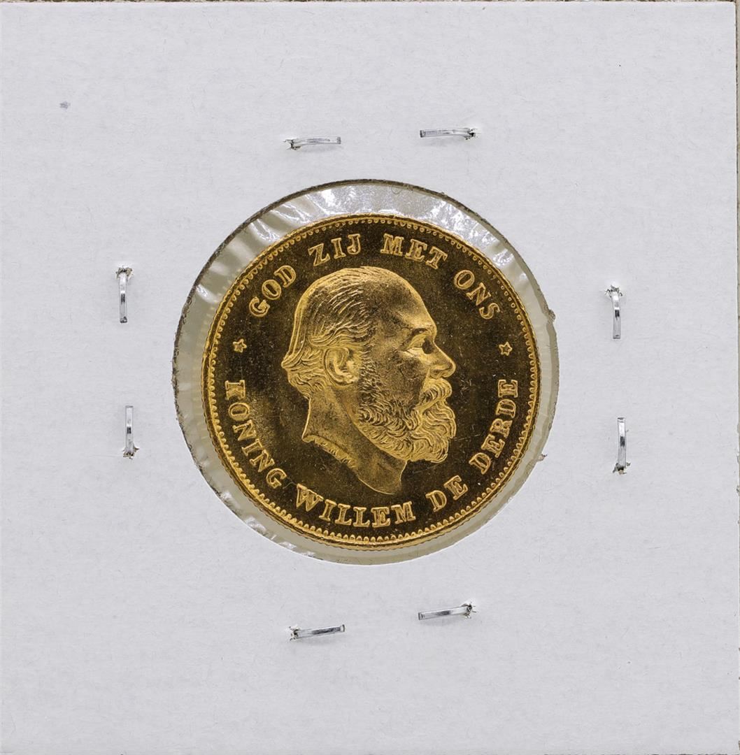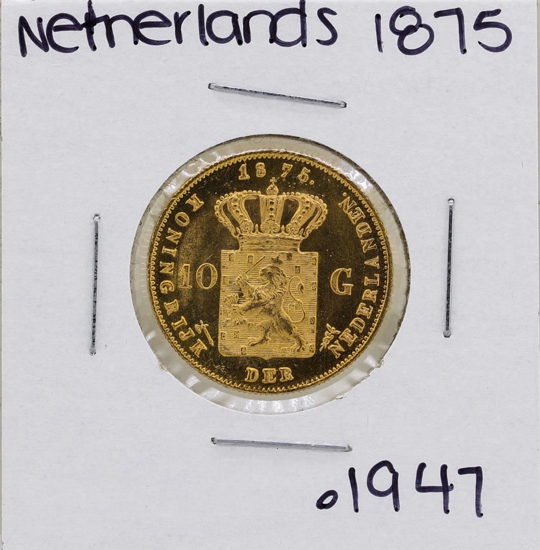 One 1875 Netherlands 10 Gulden Koning William De Derde Gold Coin.