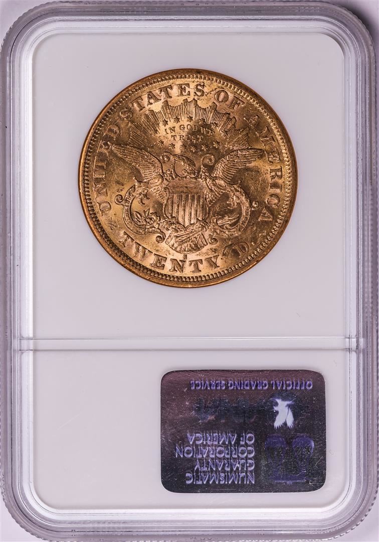 One 1875-S $20 Liberty Head Double Eagle Gold Coin NGC AU55. NGC Certified.