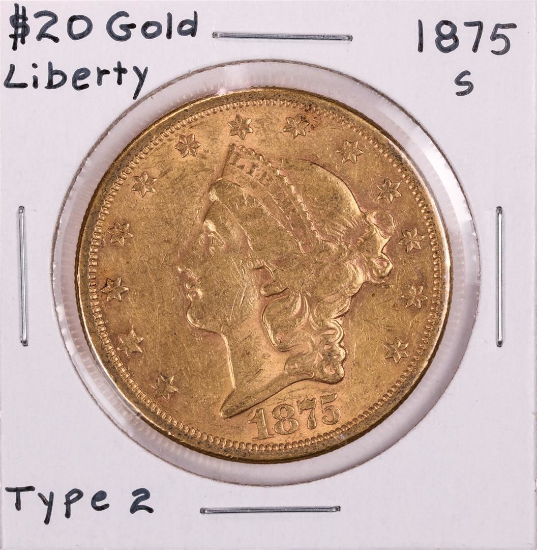 One 1875-S $20 Liberty Head Double Eagle Gold Coin.