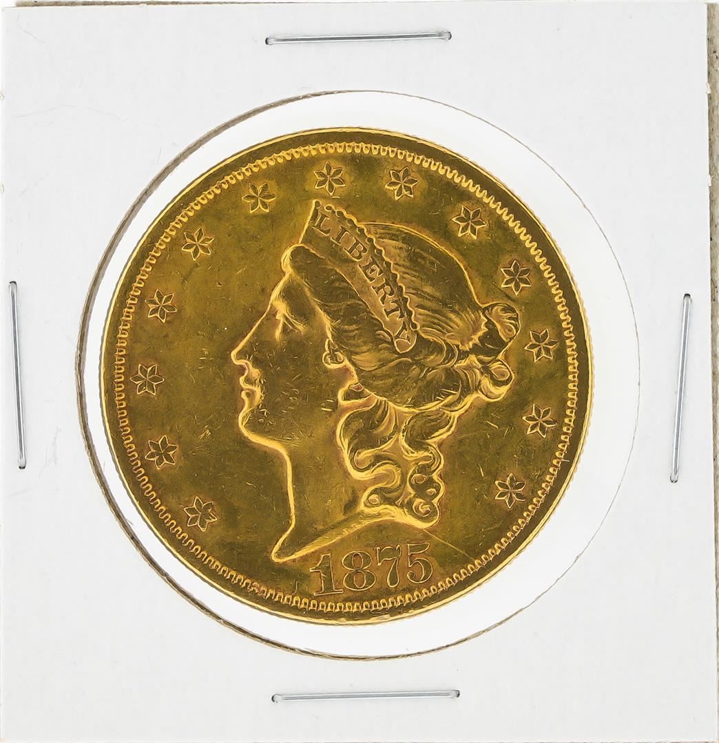 One 1875-S $20 Liberty Head Type 2 Double Eagle Gold Coin CU.