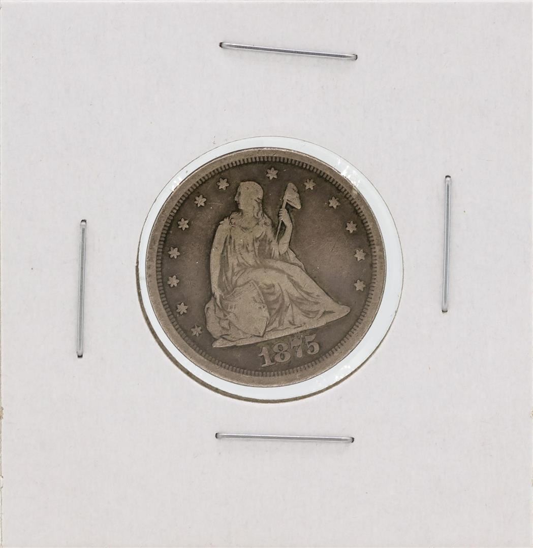 One 1875-S Liberty Seated Twenty Cent Piece Coin.