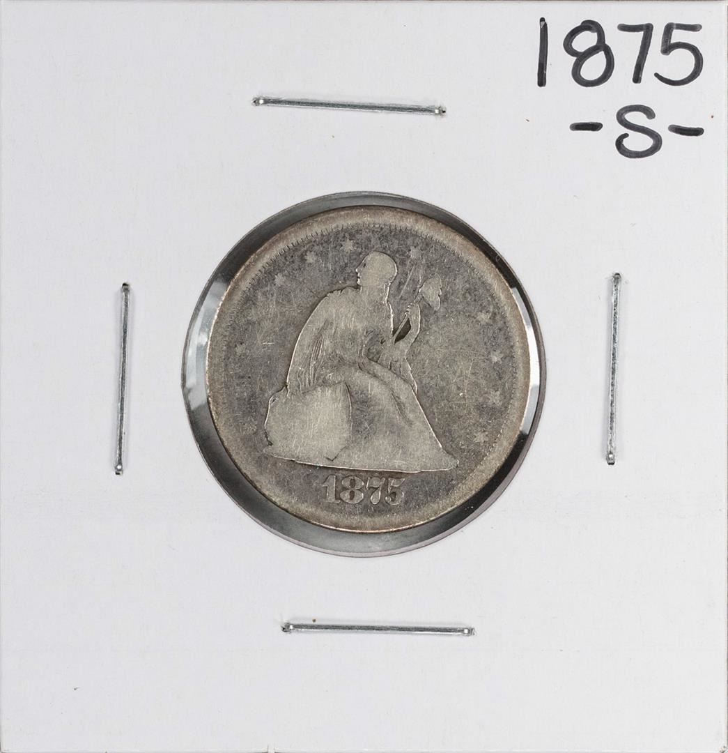 One 1875-S Seated Liberty Twenty Cent Piece Coin.